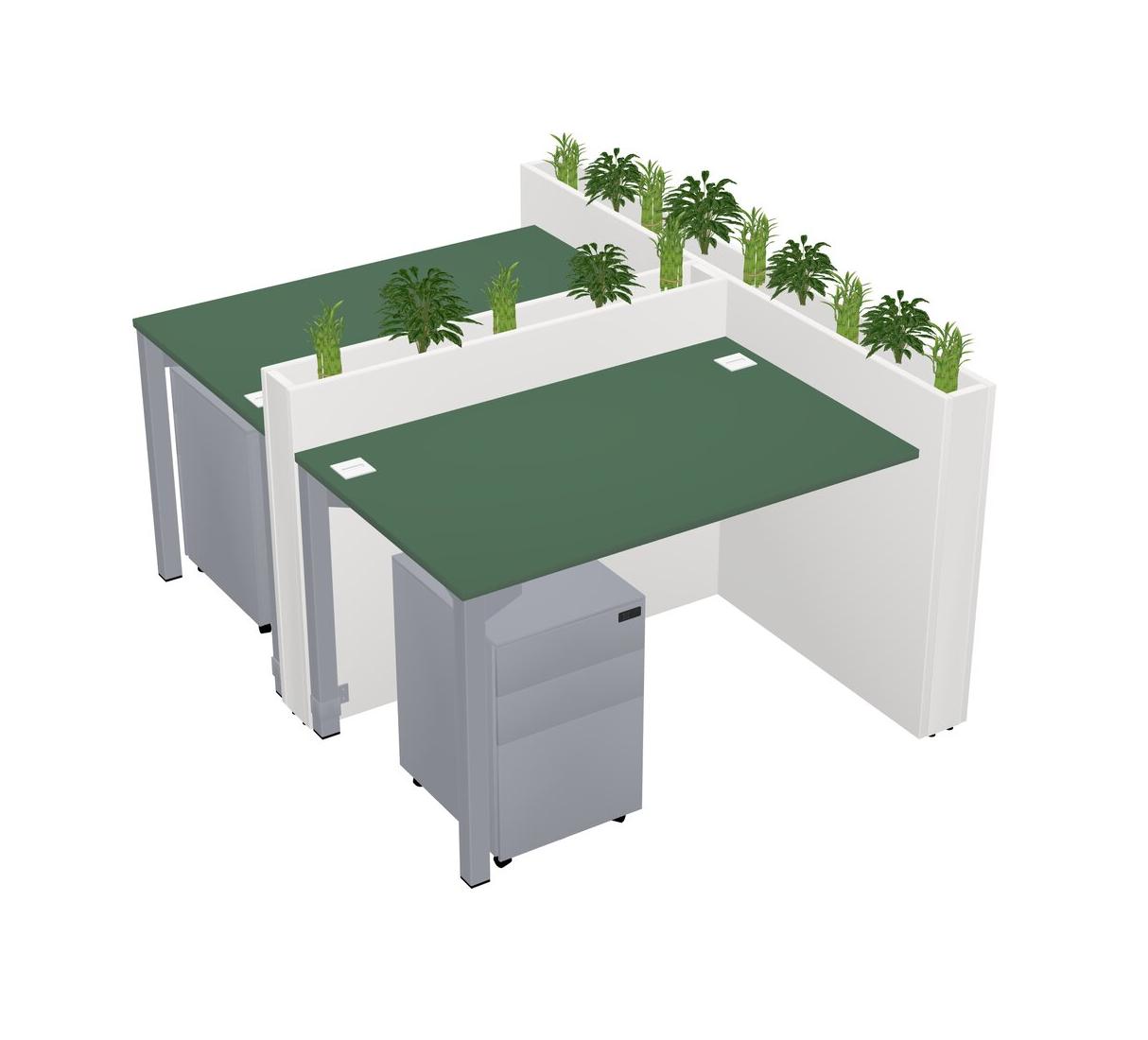 Green Rectangular Shared Office Desk System Metal Mobile Drawers (Pots & Plants Sold Separately)