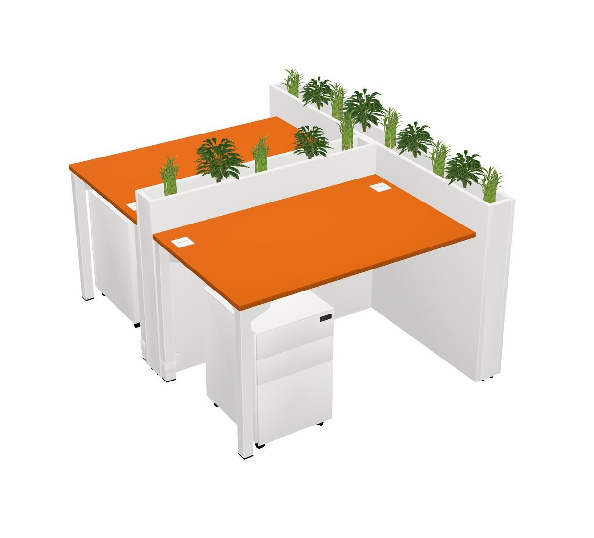 Orange Rectangular Shared Office Desk System Metal Mobile Drawers (Pots & Plants Sold Separately)