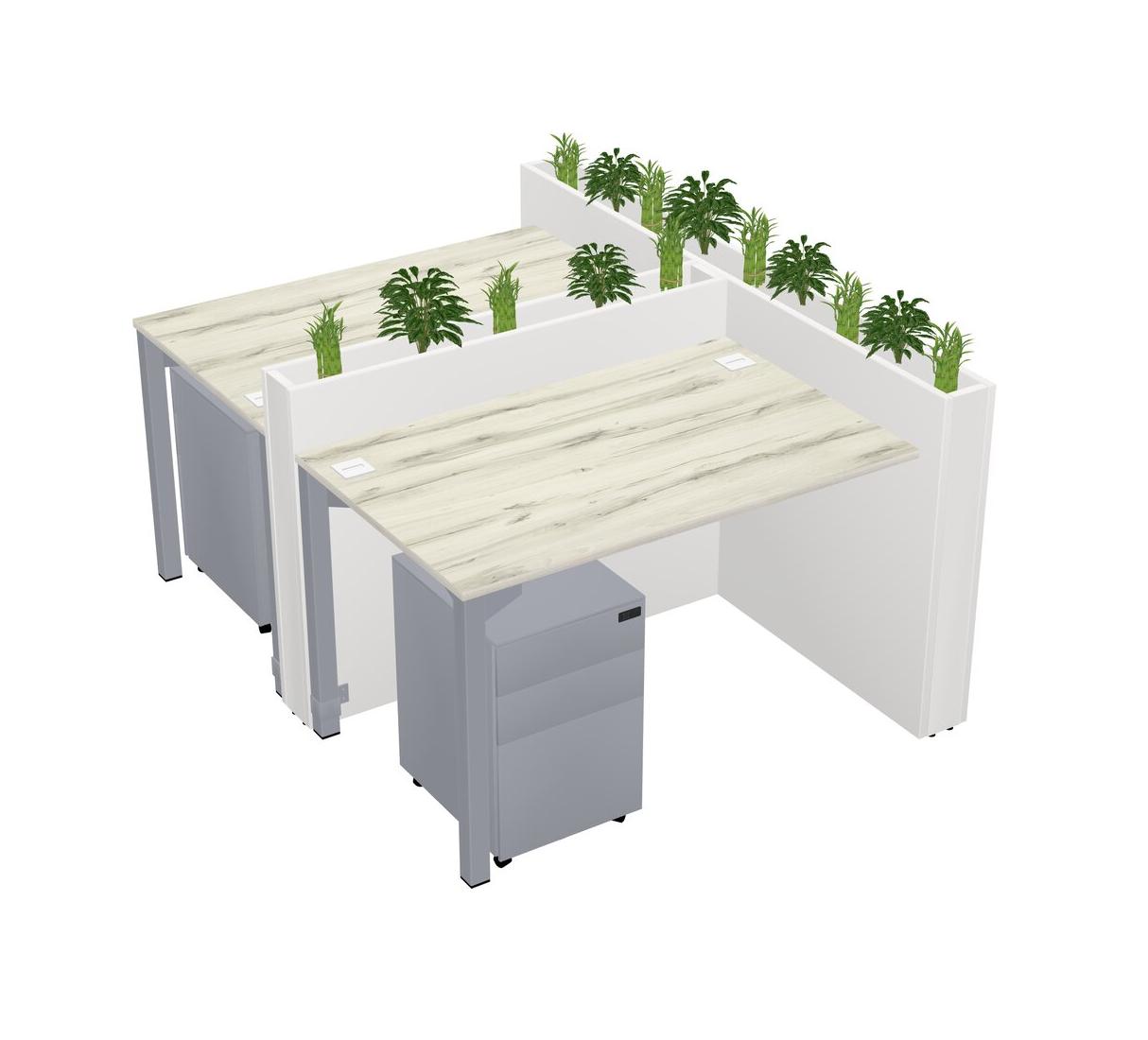 Heinne Holz Rectangular Shared Office Desk System Metal Mobile Drawers (Pots & Plants Sold Separately)