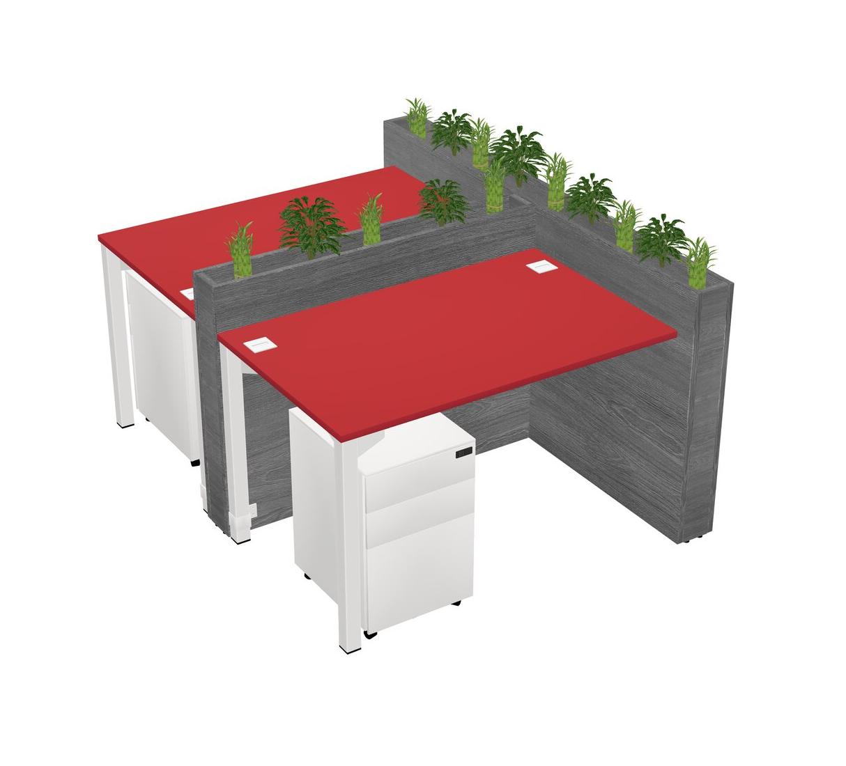 Prism Red Rectangular Shared Office Desk System Metal Mobile Drawers (Pots & Plants Sold Separately)