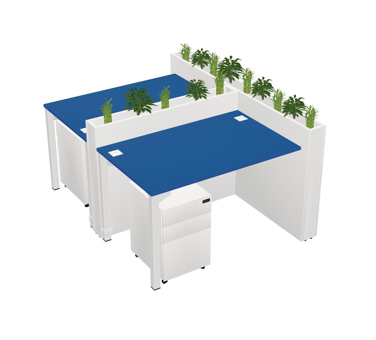 Prism Blue Rectangular Shared Office Desk System Metal Mobile Drawers (Pots & Plants Sold Separately)