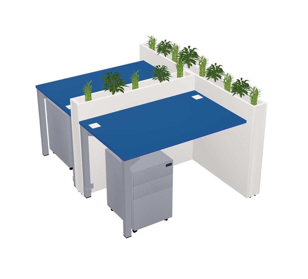 Prism Blue Rectangular Shared Office Desk System Metal Mobile Drawers (Pots & Plants Sold Separately)
