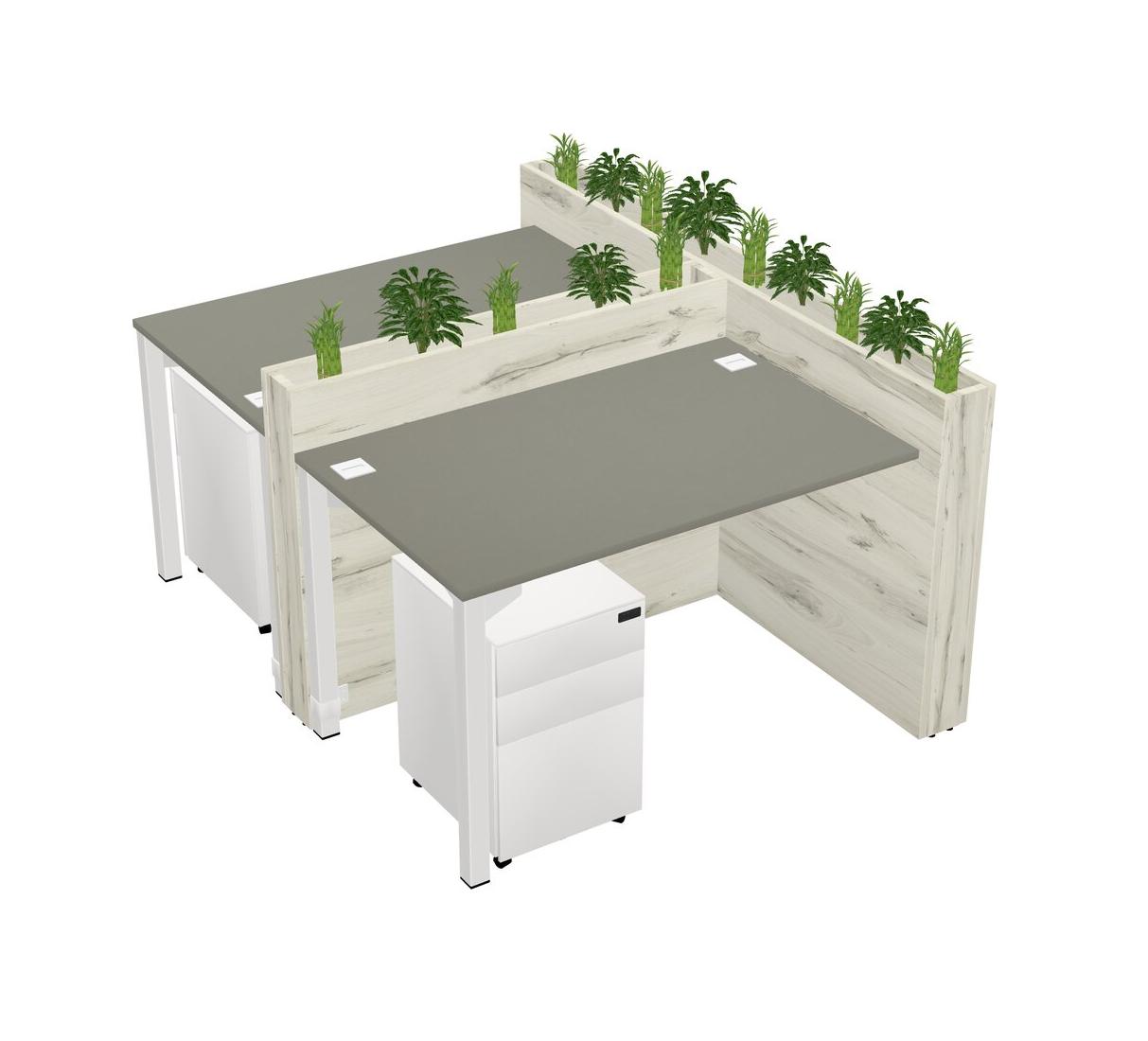 Grey Shadows Rectangular Shared Office Desk System Metal Mobile Drawers (Pots & Plants Sold Separately)