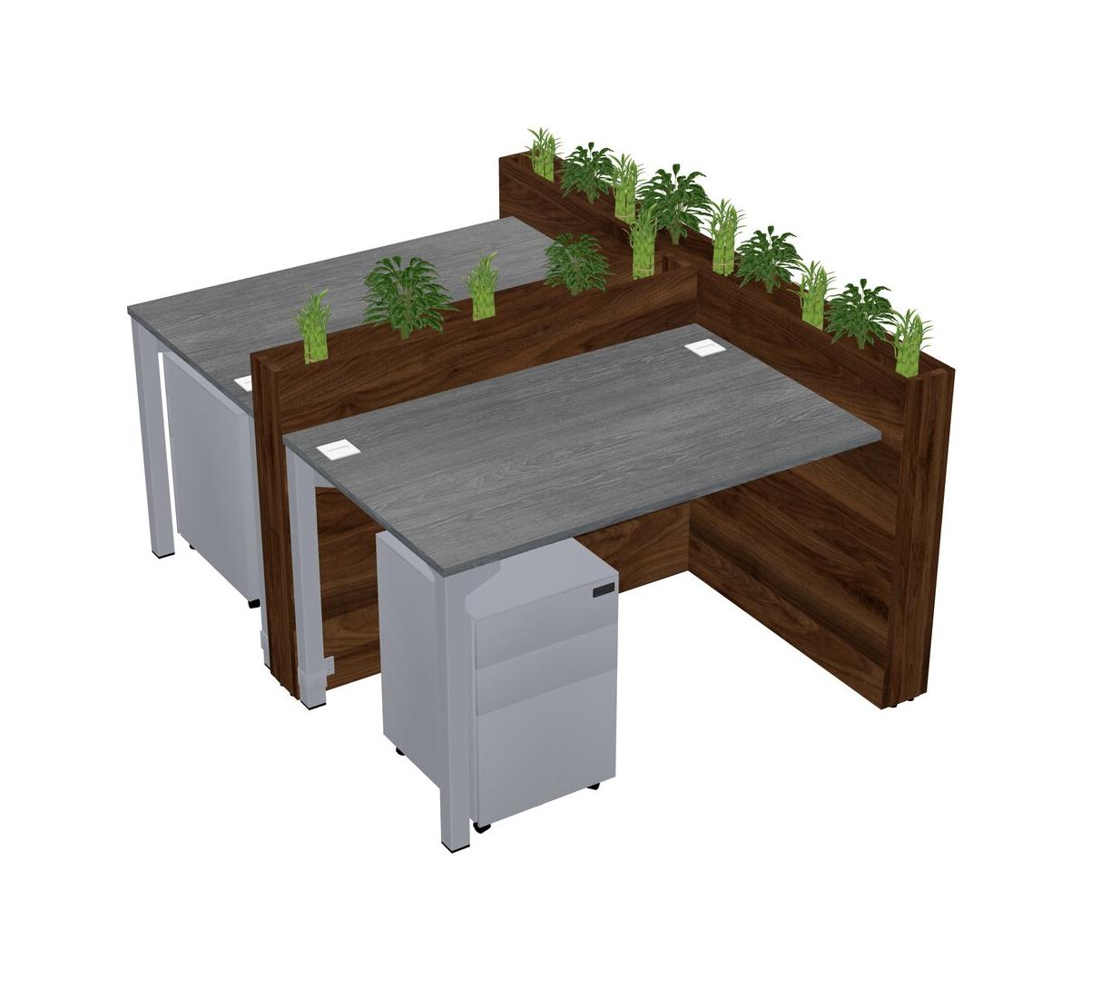 Grey Rectangular Shared Office Desk System Metal Mobile Drawers (Pots & Plants Sold Separately)