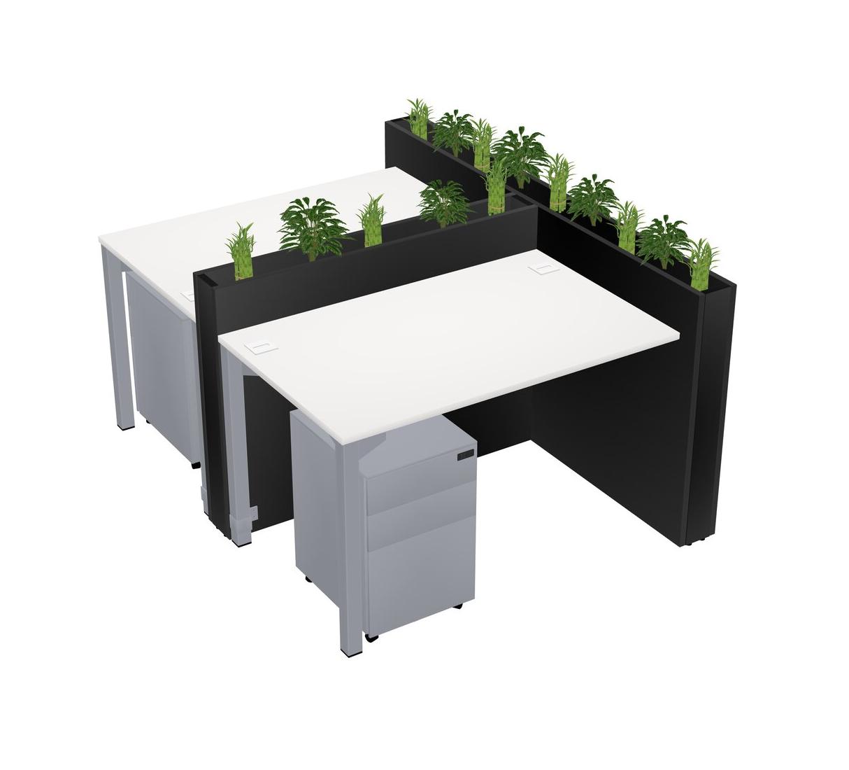 White Rectangular Shared Office Desk System Metal Mobile Drawers (Pots & Plants Sold Separately)