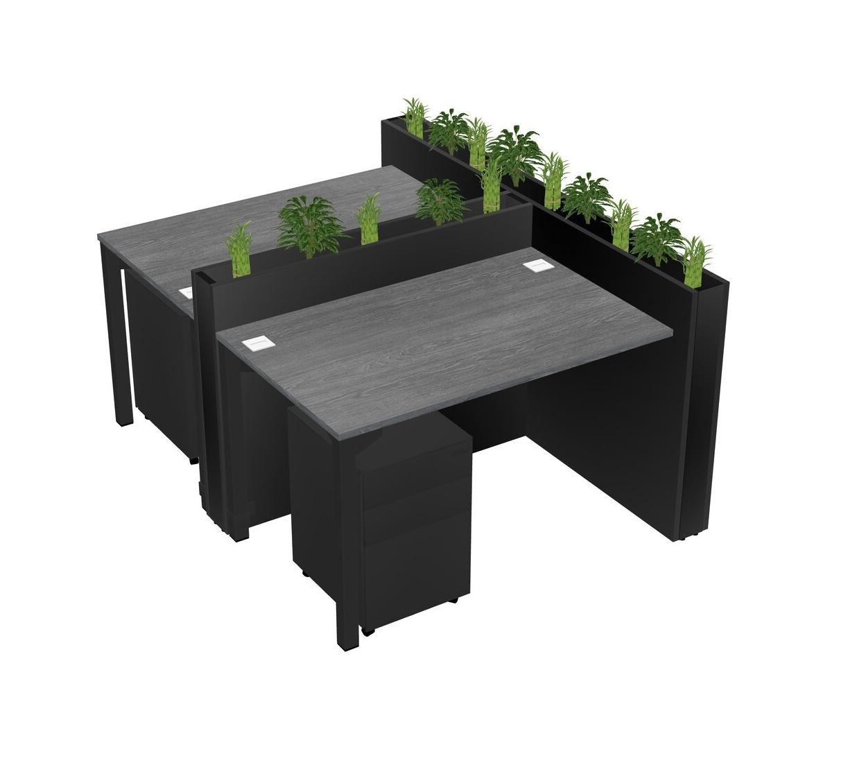Grey Rectangular Shared Office Desk System Metal Mobile Drawers (Pots & Plants Sold Separately)