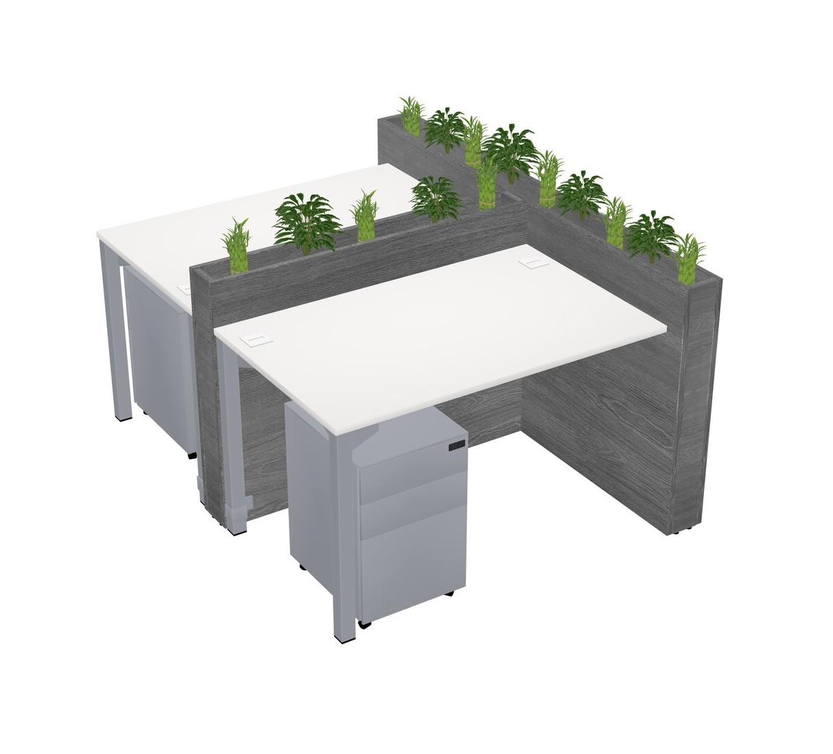 White Rectangular Shared Office Desk System Metal Mobile Drawers (Pots & Plants Sold Separately)