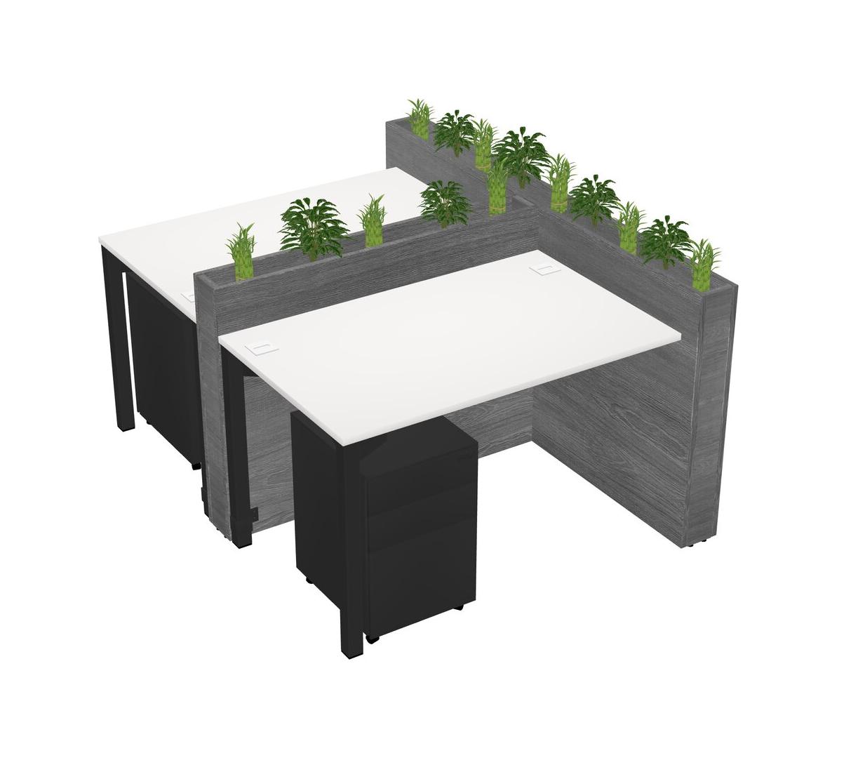 White Rectangular Shared Office Desk System Metal Mobile Drawers (Pots & Plants Sold Separately)