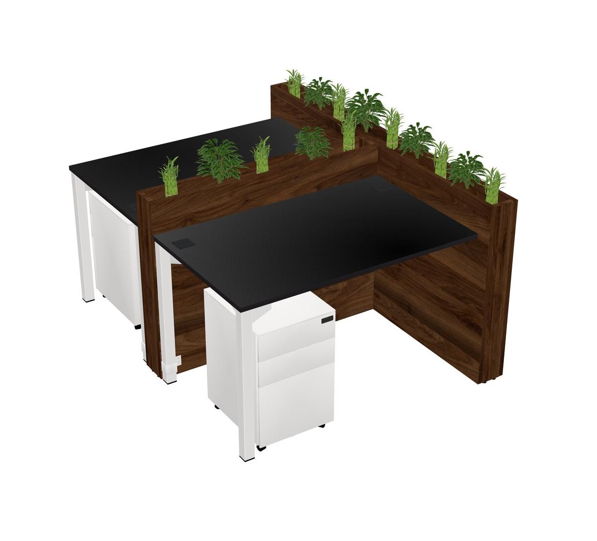 Black Rectangular Shared Office Desk System Metal Mobile Drawers (Pots & Plants Sold Separately)