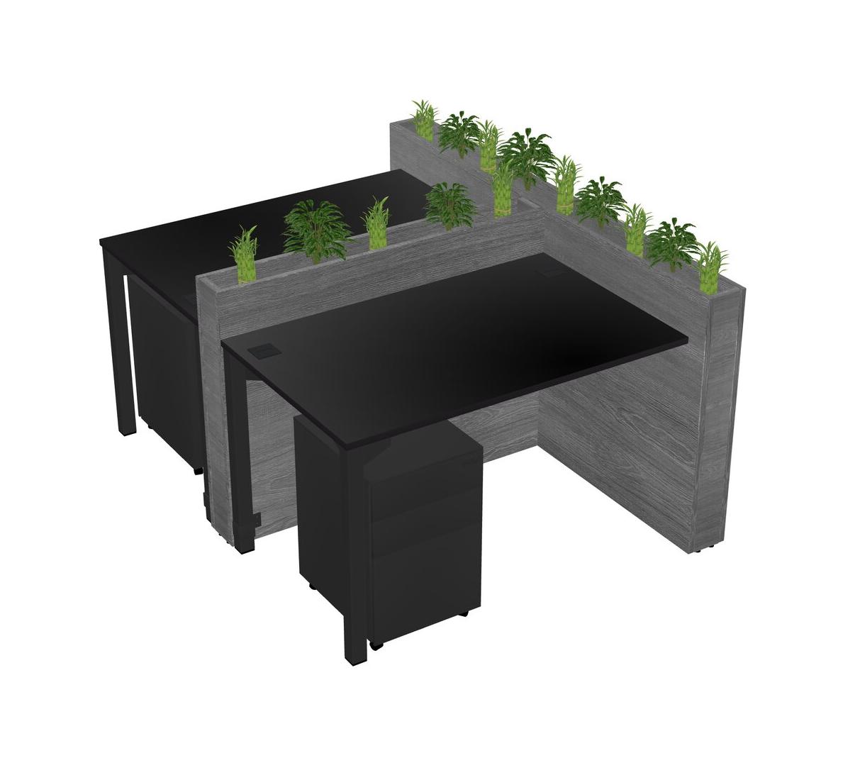 Black Rectangular Shared Office Desk System Metal Mobile Drawers (Pots & Plants Sold Separately)