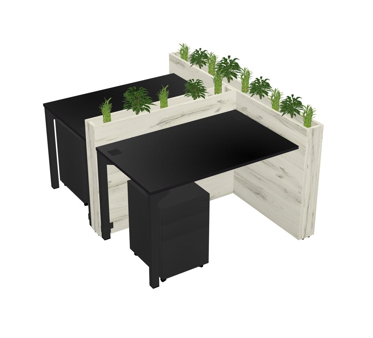 Black Rectangular Shared Office Desk System Metal Mobile Drawers (Pots & Plants Sold Separately)