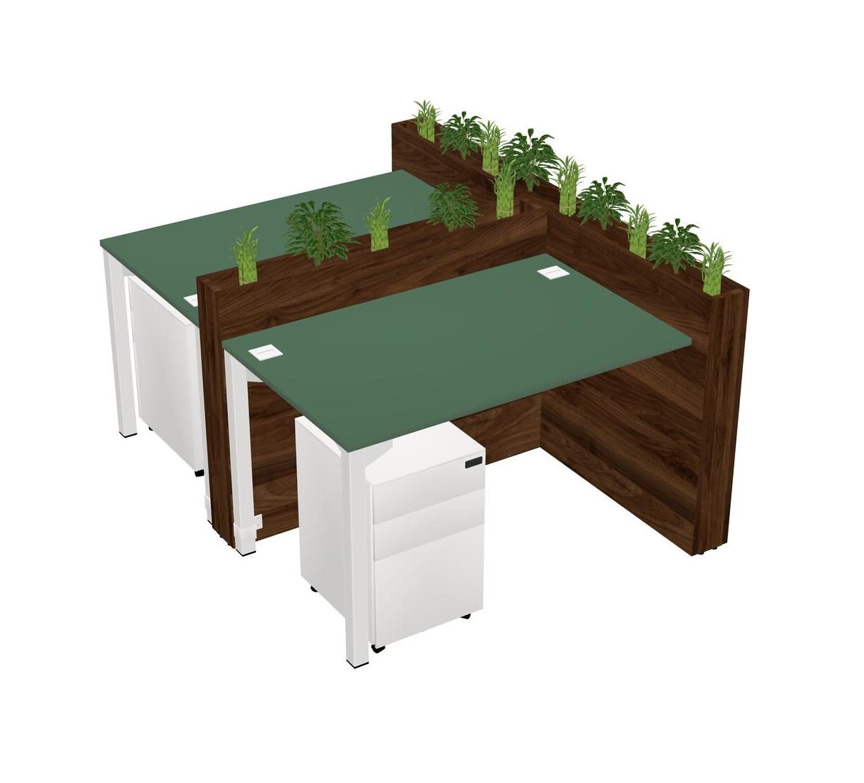 Green Rectangular Shared Office Desk System Metal Mobile Drawers (Pots & Plants Sold Separately)