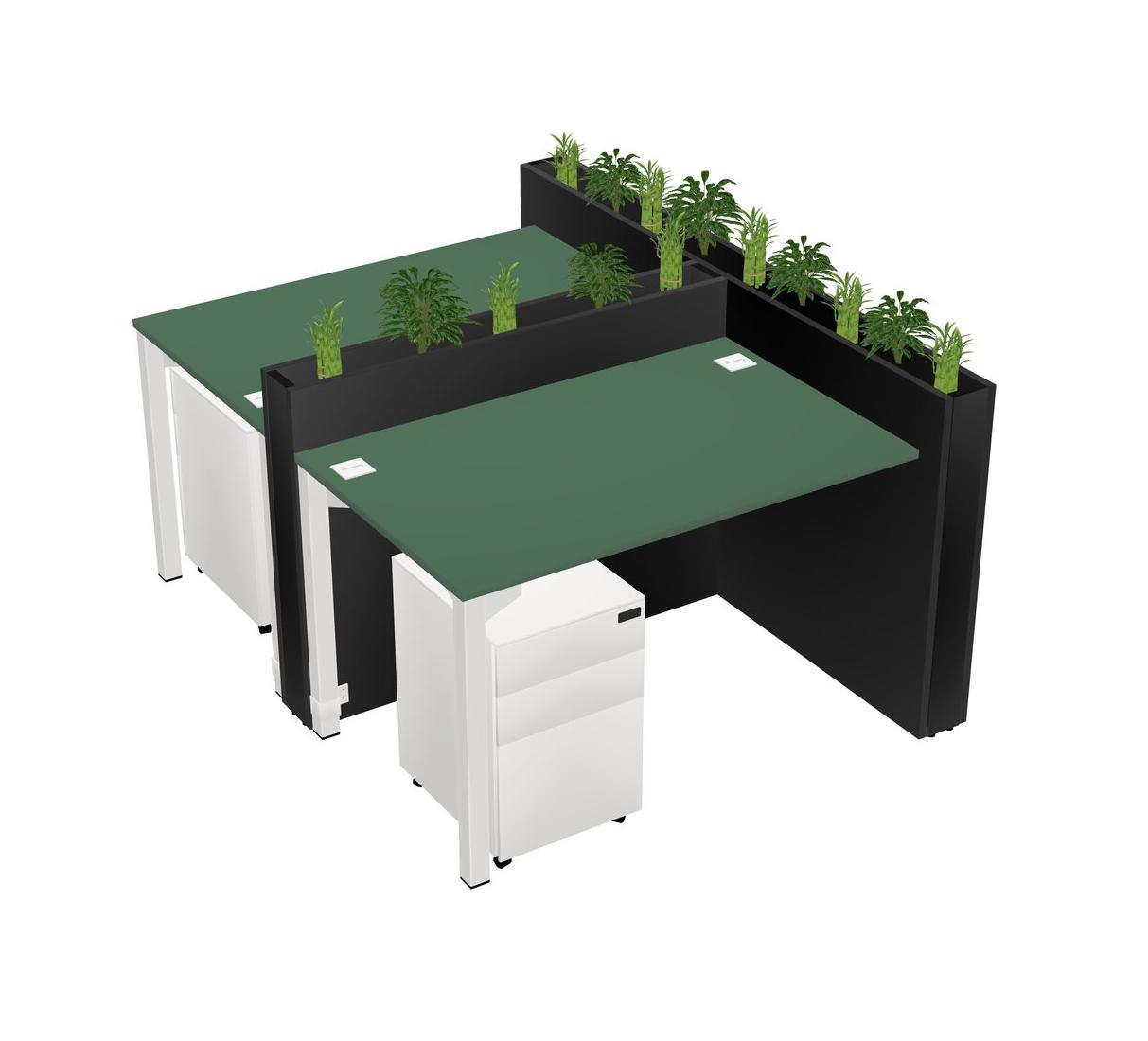 Green Rectangular Shared Office Desk System Metal Mobile Drawers (Pots & Plants Sold Separately)