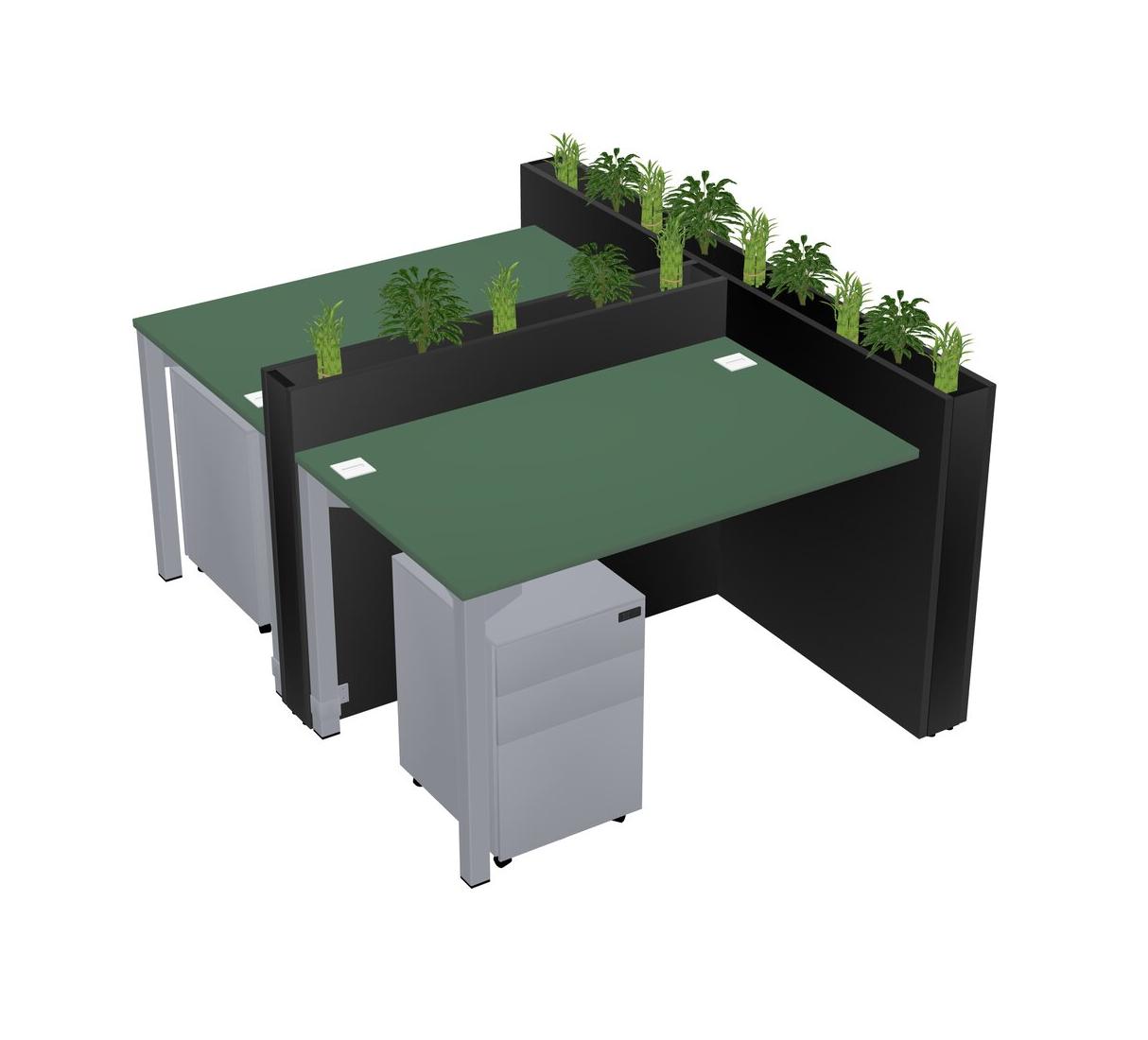 Green Rectangular Shared Office Desk System Metal Mobile Drawers (Pots & Plants Sold Separately)