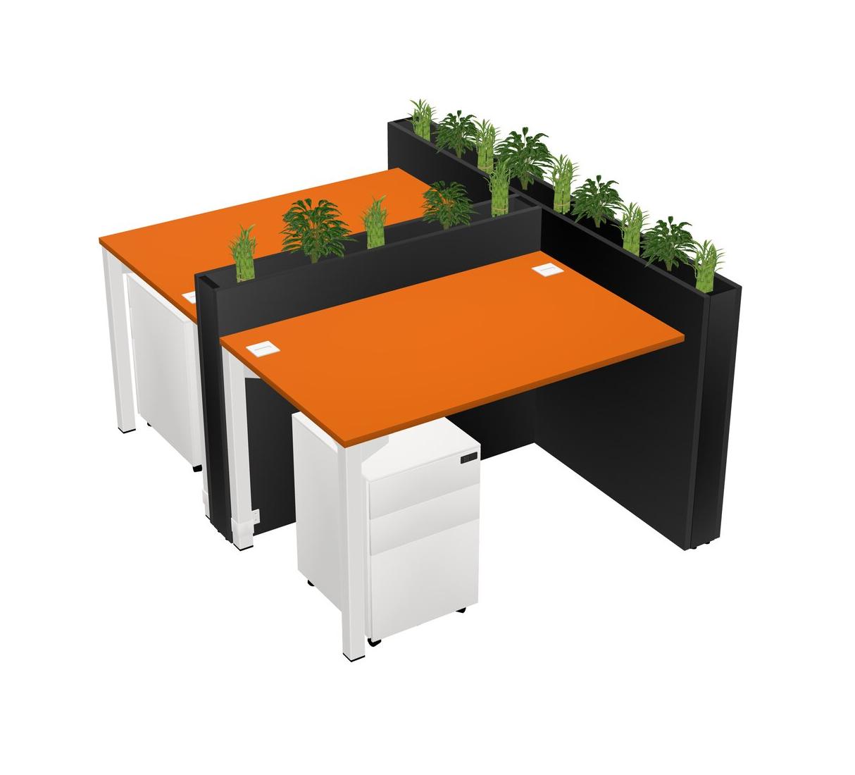 Orange Rectangular Shared Office Desk System Metal Mobile Drawers (Pots & Plants Sold Separately)