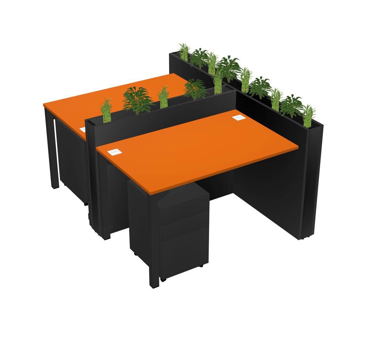 Orange Rectangular Shared Office Desk System Metal Mobile Drawers (Pots & Plants Sold Separately)