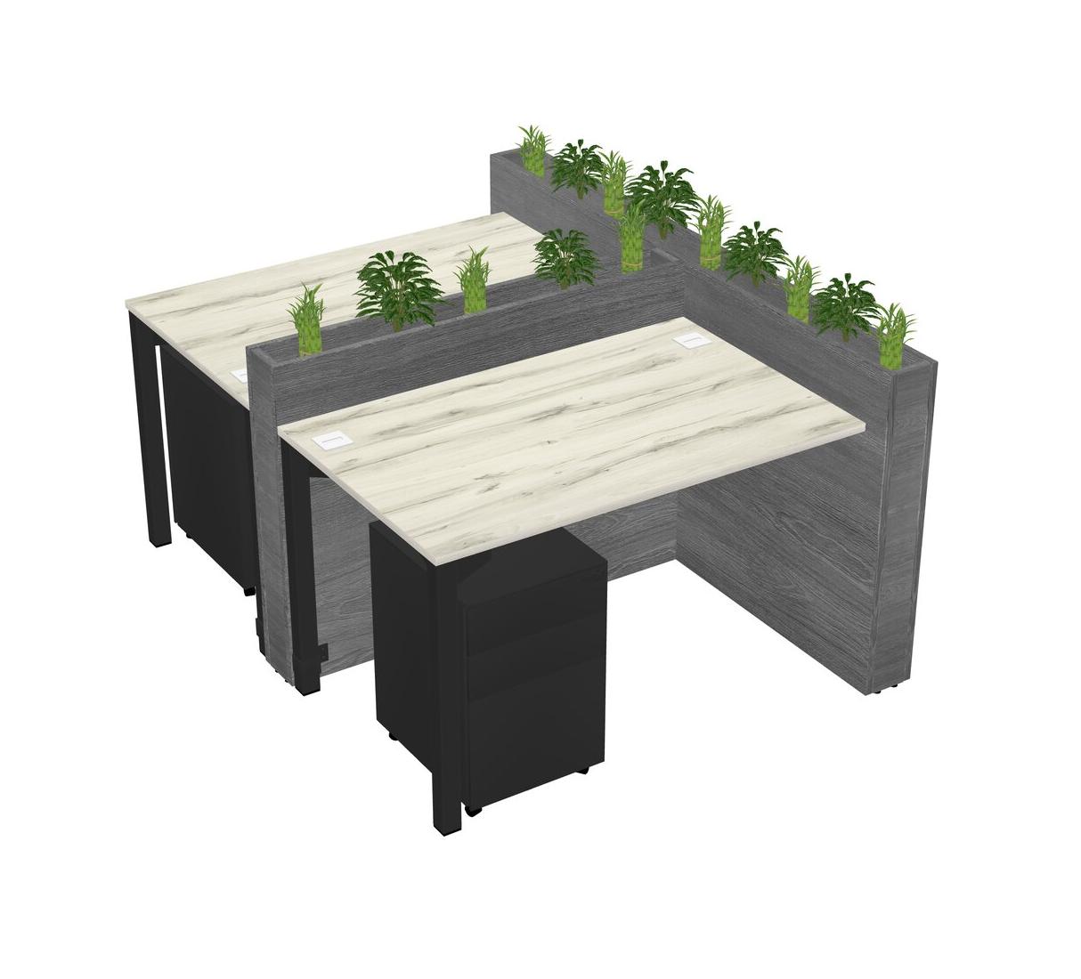 Heinne Holz Rectangular Shared Office Desk System Metal Mobile Drawers (Pots & Plants Sold Separately)