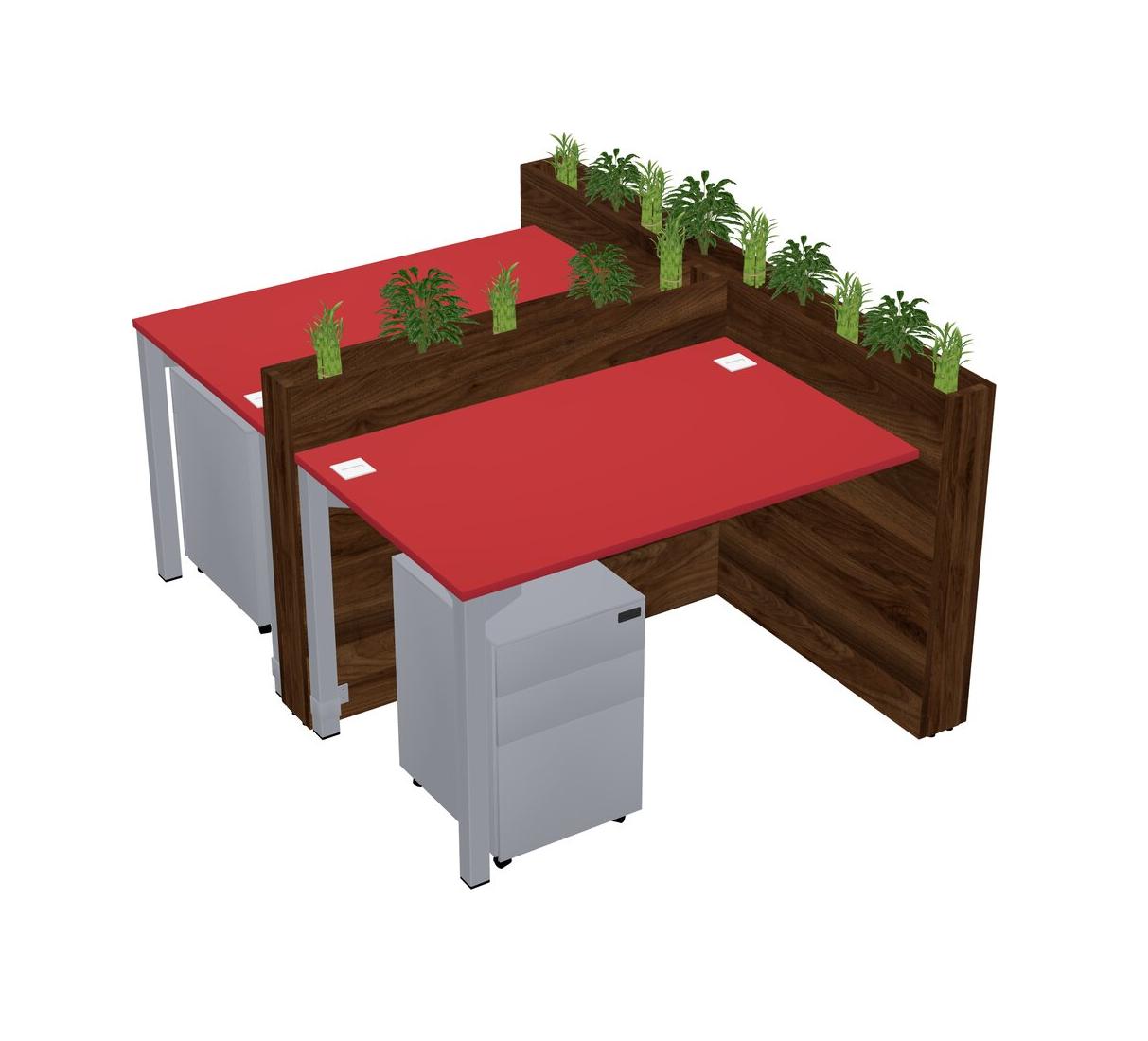 Prism Red Rectangular Shared Office Desk System Metal Mobile Drawers (Pots & Plants Sold Separately)
