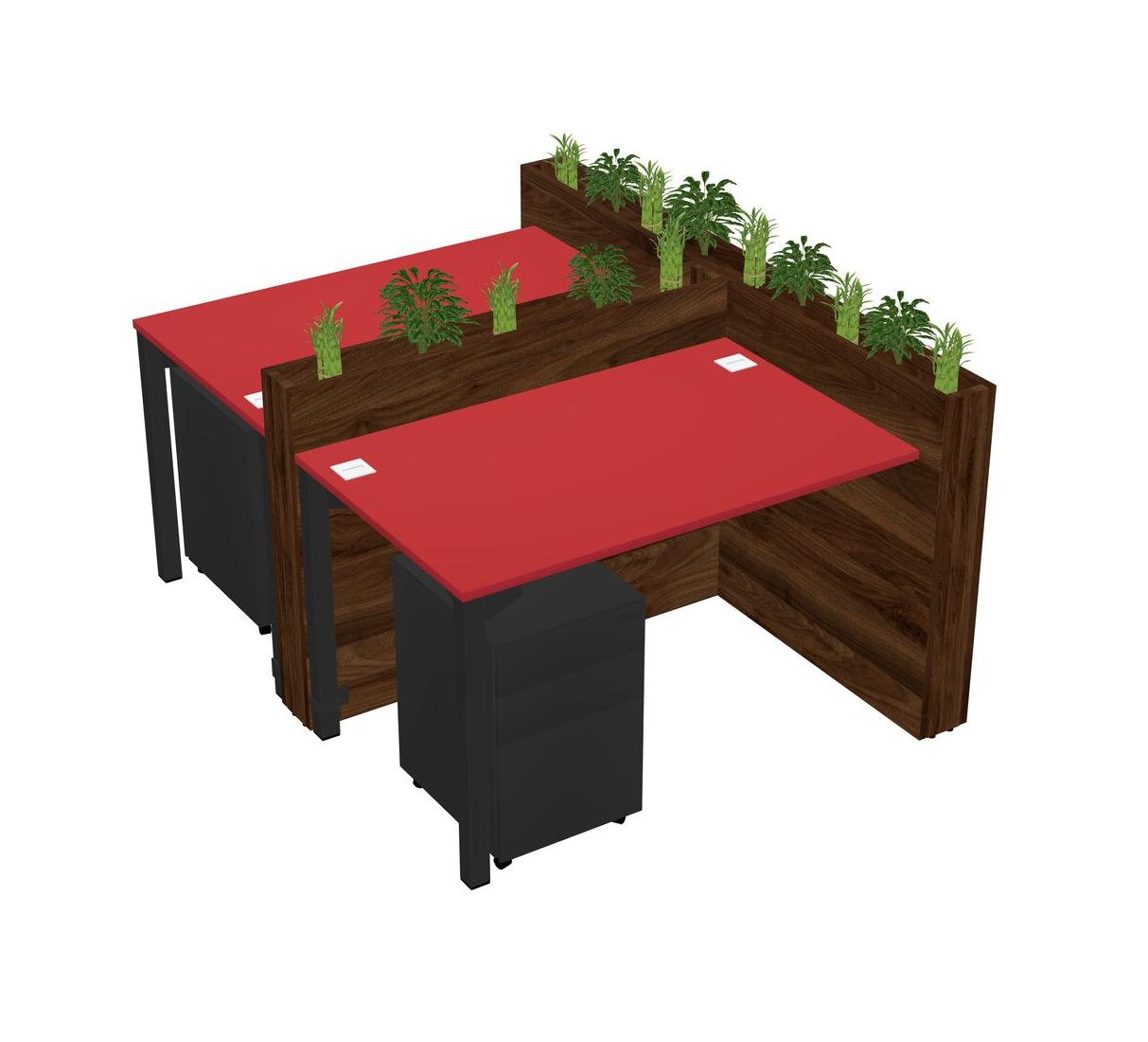 Prism Red Rectangular Shared Office Desk System Metal Mobile Drawers (Pots & Plants Sold Separately)