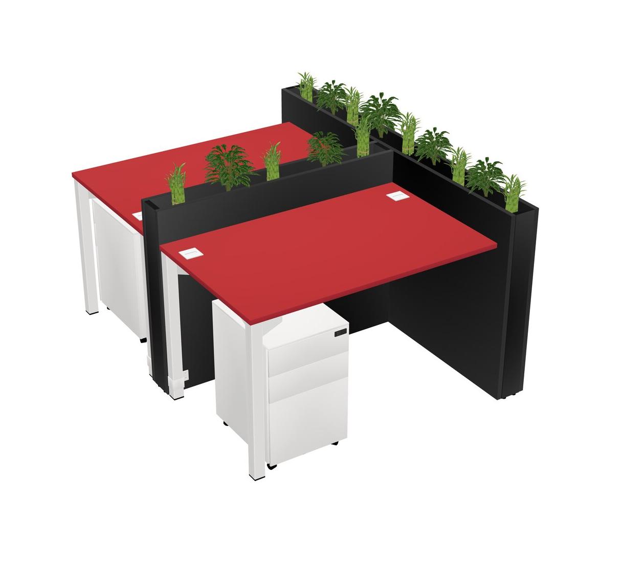 Prism Red Rectangular Shared Office Desk System Metal Mobile Drawers (Pots & Plants Sold Separately)