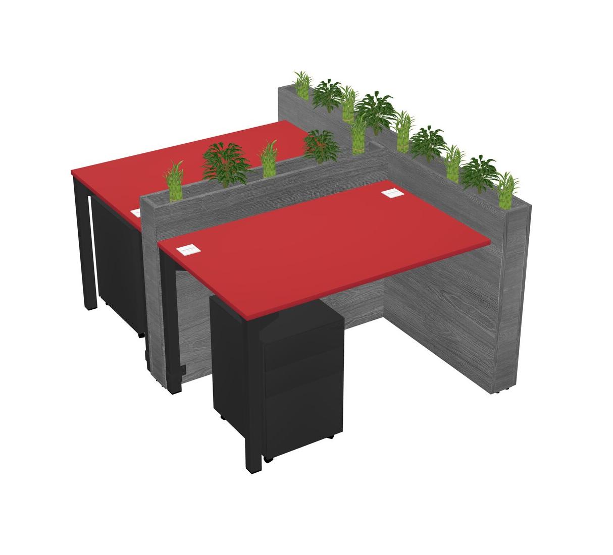 Prism Red Rectangular Shared Office Desk System Metal Mobile Drawers (Pots & Plants Sold Separately)