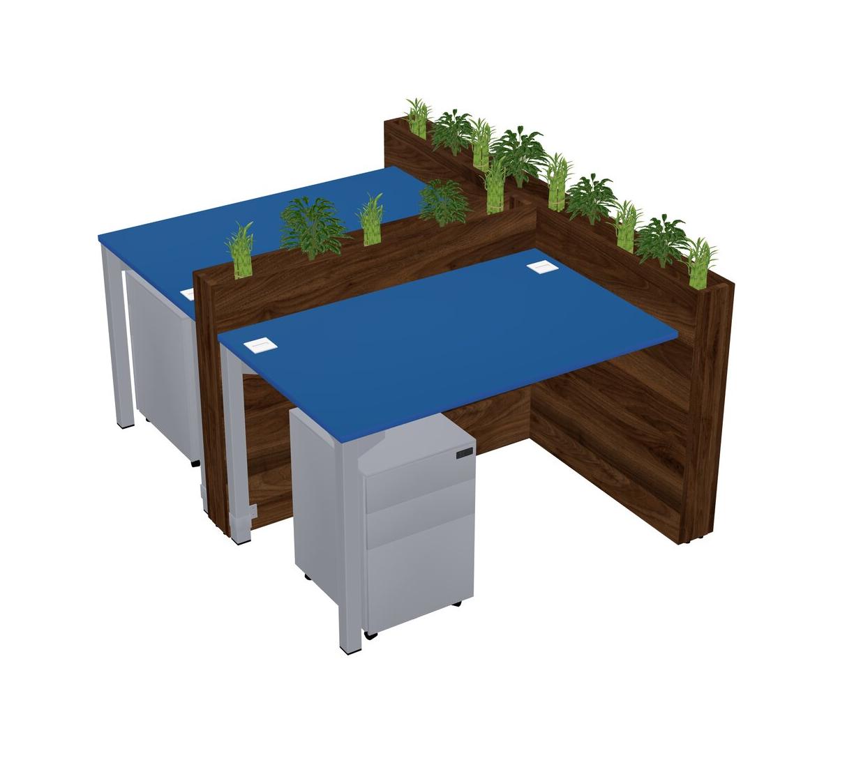 Prism Blue Rectangular Shared Office Desk System Metal Mobile Drawers (Pots & Plants Sold Separately)