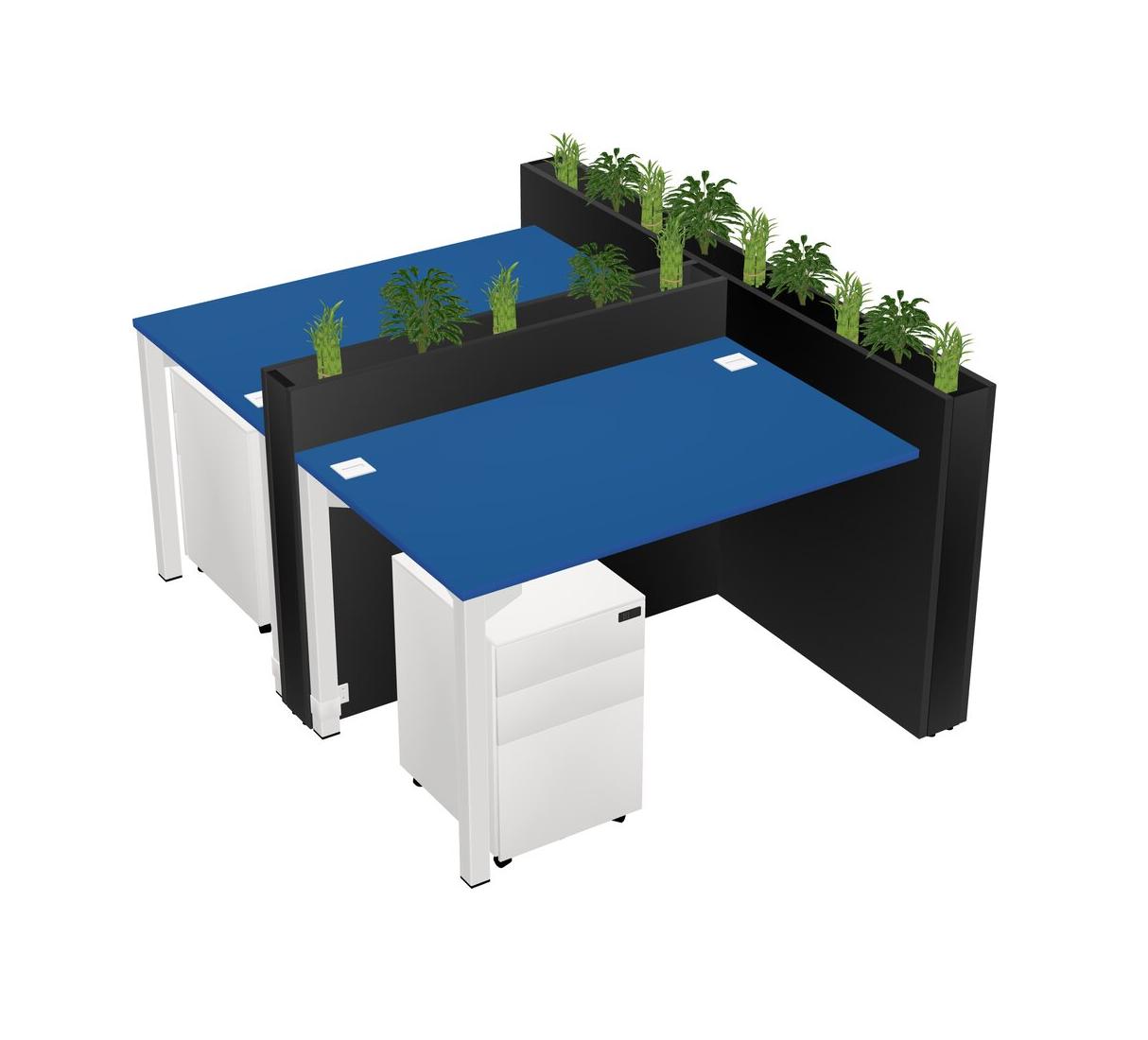 Prism Blue Rectangular Shared Office Desk System Metal Mobile Drawers (Pots & Plants Sold Separately)