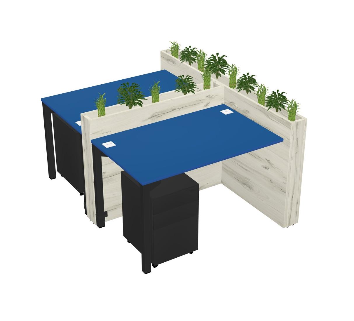 Prism Blue Rectangular Shared Office Desk System Metal Mobile Drawers (Pots & Plants Sold Separately)