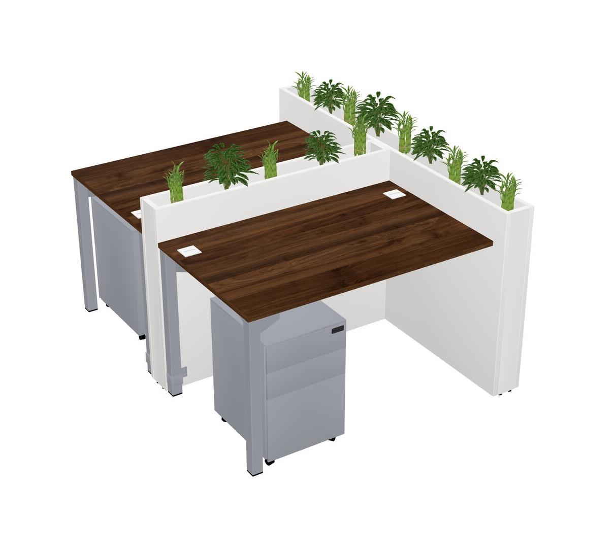 Columbia Walnut Rectangular Shared Office Desk System Metal Mobile Drawers (Pots & Plants Sold Separately)