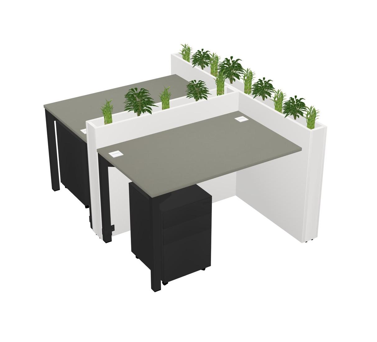 Grey Shadows Rectangular Shared Office Desk System Metal Mobile Drawers (Pots & Plants Sold Separately)