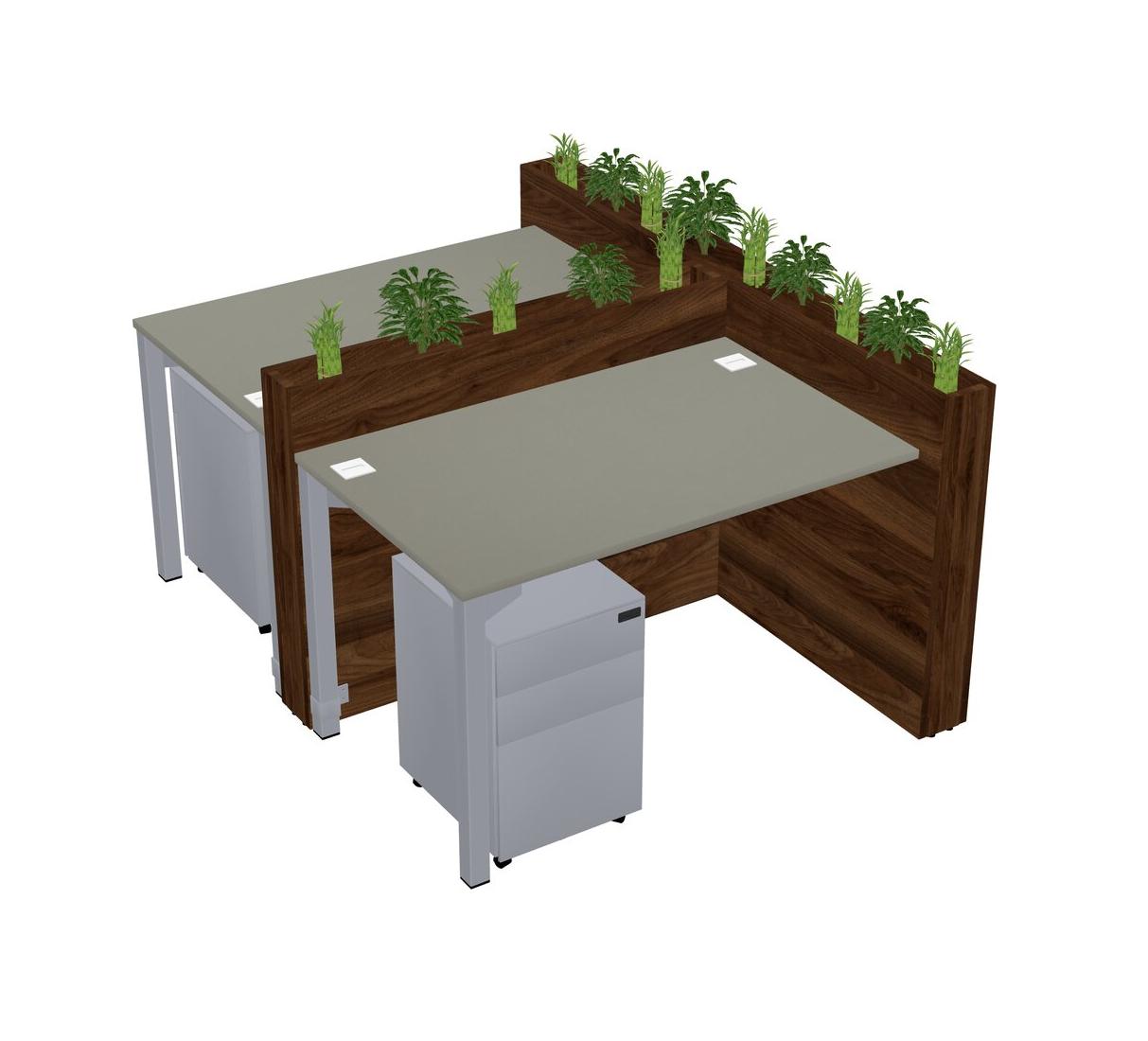 Grey Shadows Rectangular Shared Office Desk System Metal Mobile Drawers (Pots & Plants Sold Separately)