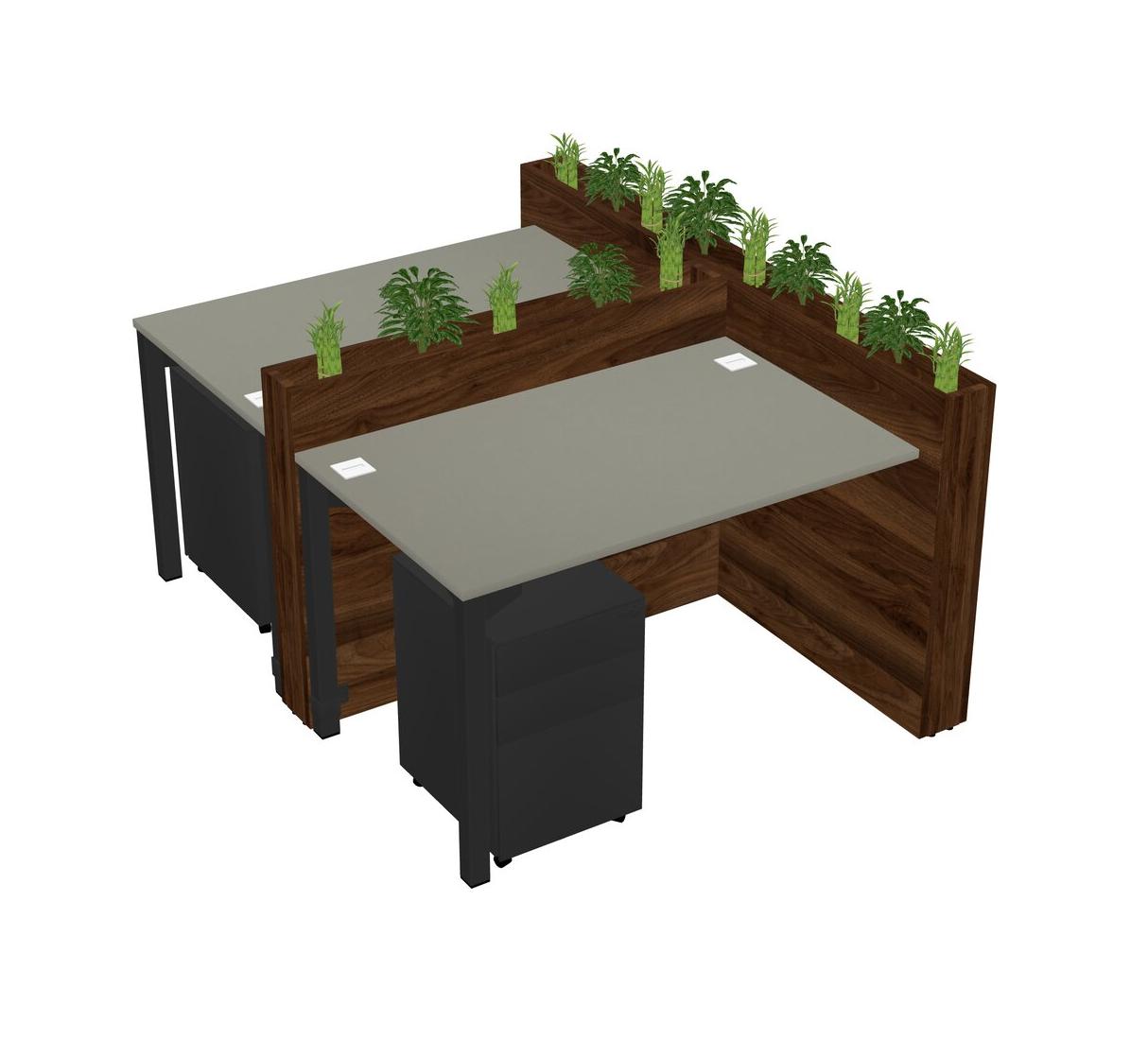 Grey Shadows Rectangular Shared Office Desk System Metal Mobile Drawers (Pots & Plants Sold Separately)