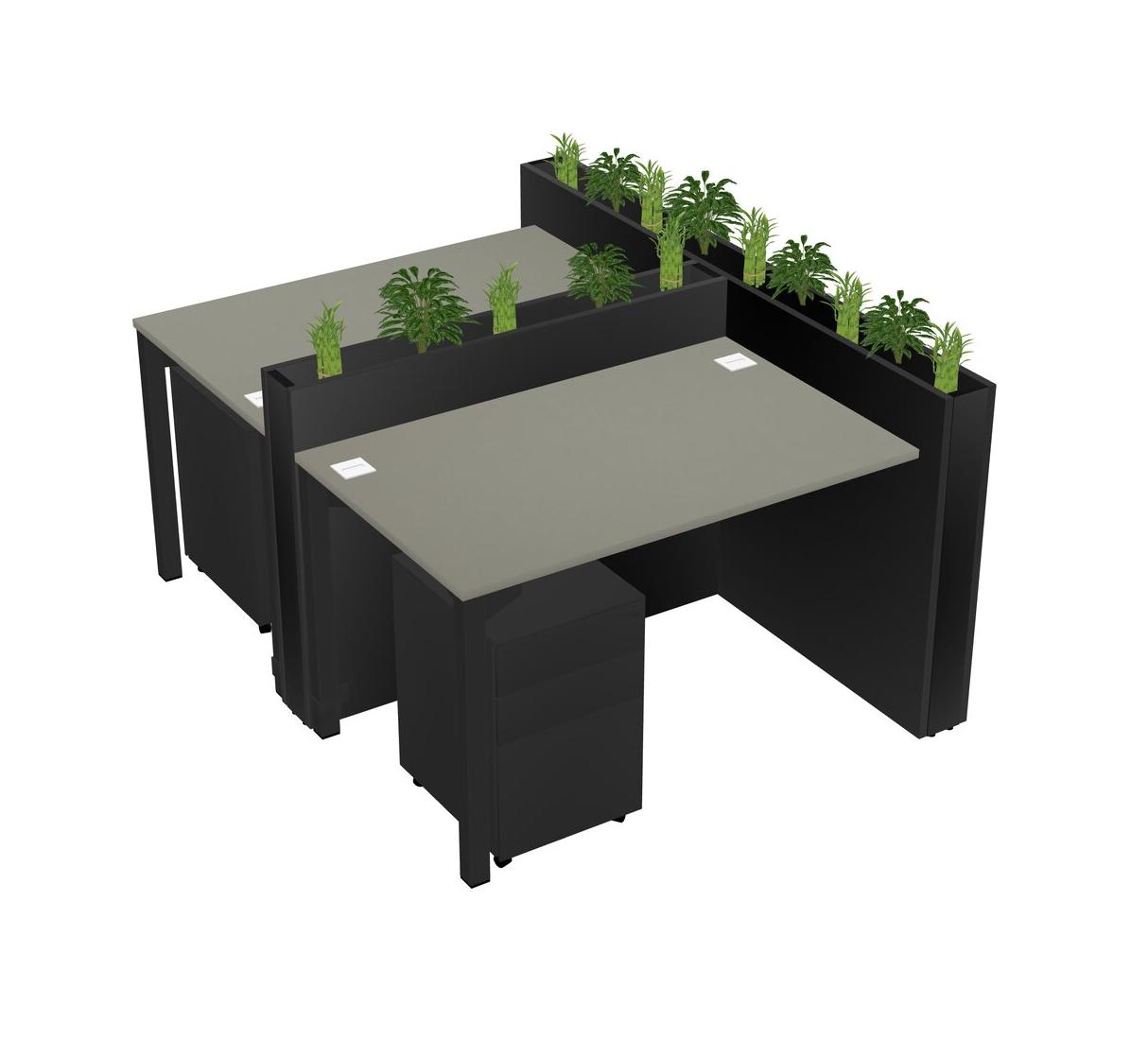 Grey Shadows Rectangular Shared Office Desk System Metal Mobile Drawers (Pots & Plants Sold Separately)