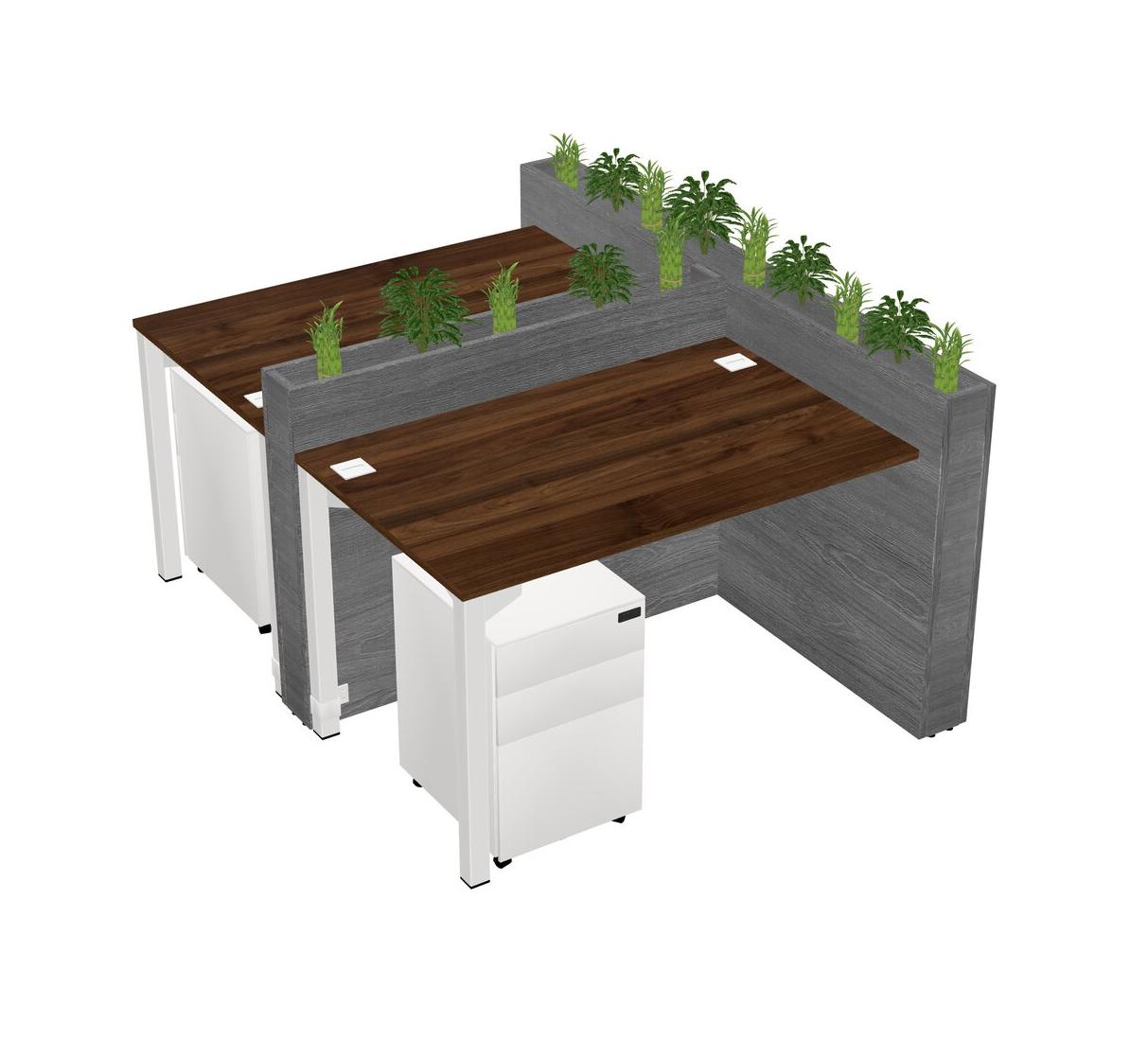 Columbia Walnut Rectangular Shared Office Desk System Metal Mobile Drawers (Pots & Plants Sold Separately)
