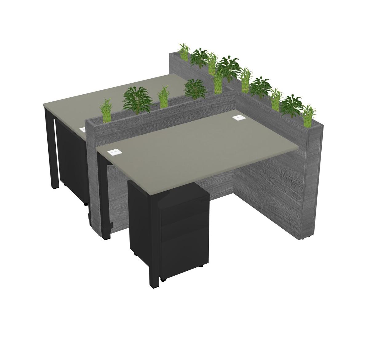 Grey Shadows Rectangular Shared Office Desk System Metal Mobile Drawers (Pots & Plants Sold Separately)