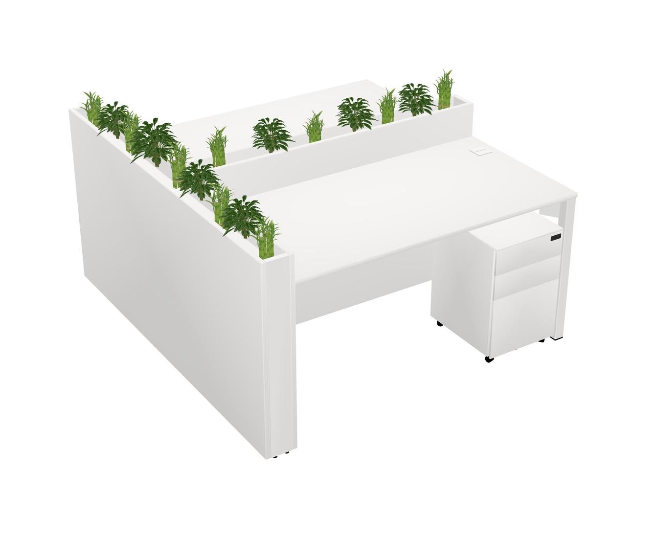 White Rectangular Shared Office Desk System Metal Mobile Drawers (Pots & Plants Sold Separately)