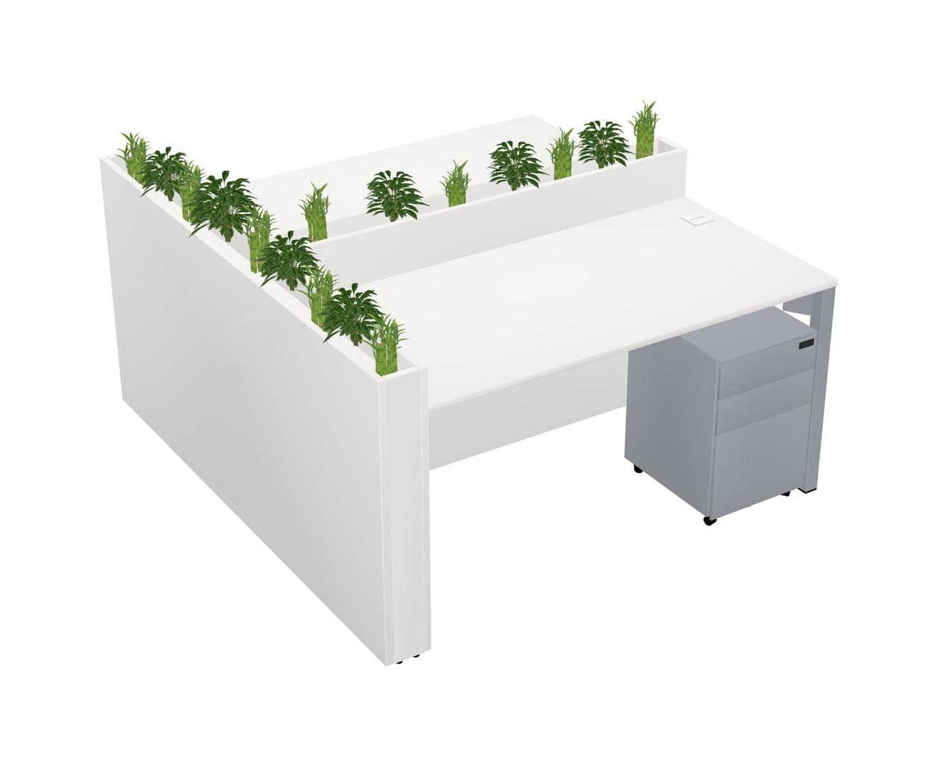 White Rectangular Shared Office Desk System Metal Mobile Drawers (Pots & Plants Sold Separately)