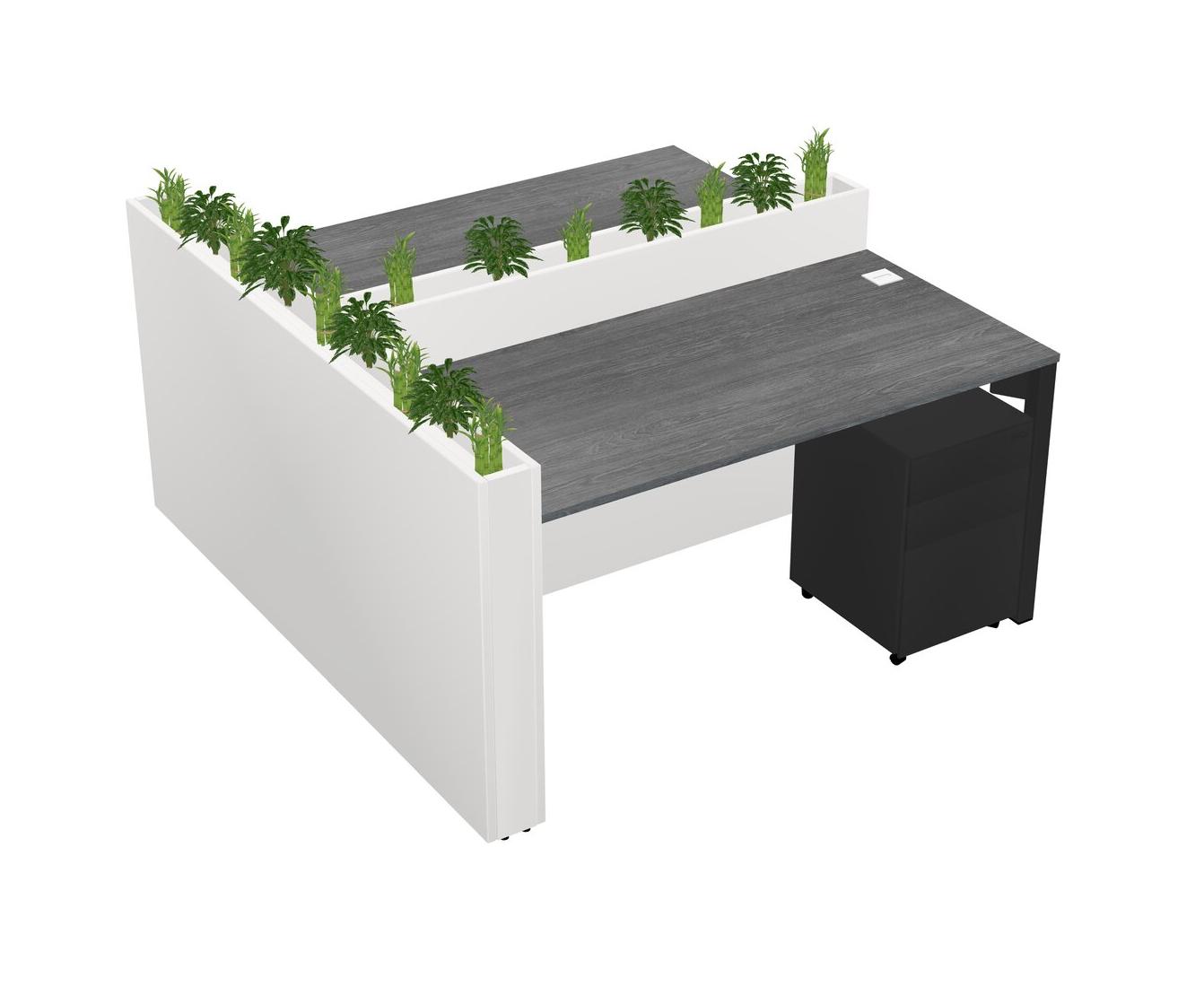 Grey Rectangular Shared Office Desk System Metal Mobile Drawers (Pots & Plants Sold Separately)