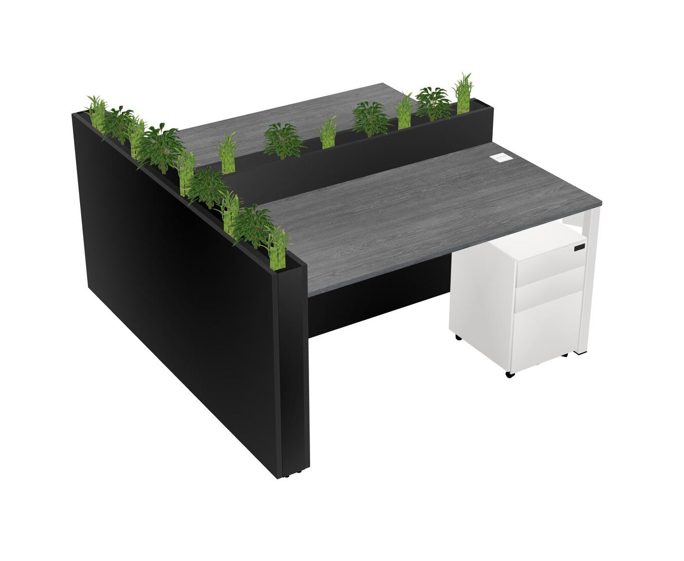 Grey Rectangular Shared Office Desk System Metal Mobile Drawers (Pots & Plants Sold Separately)