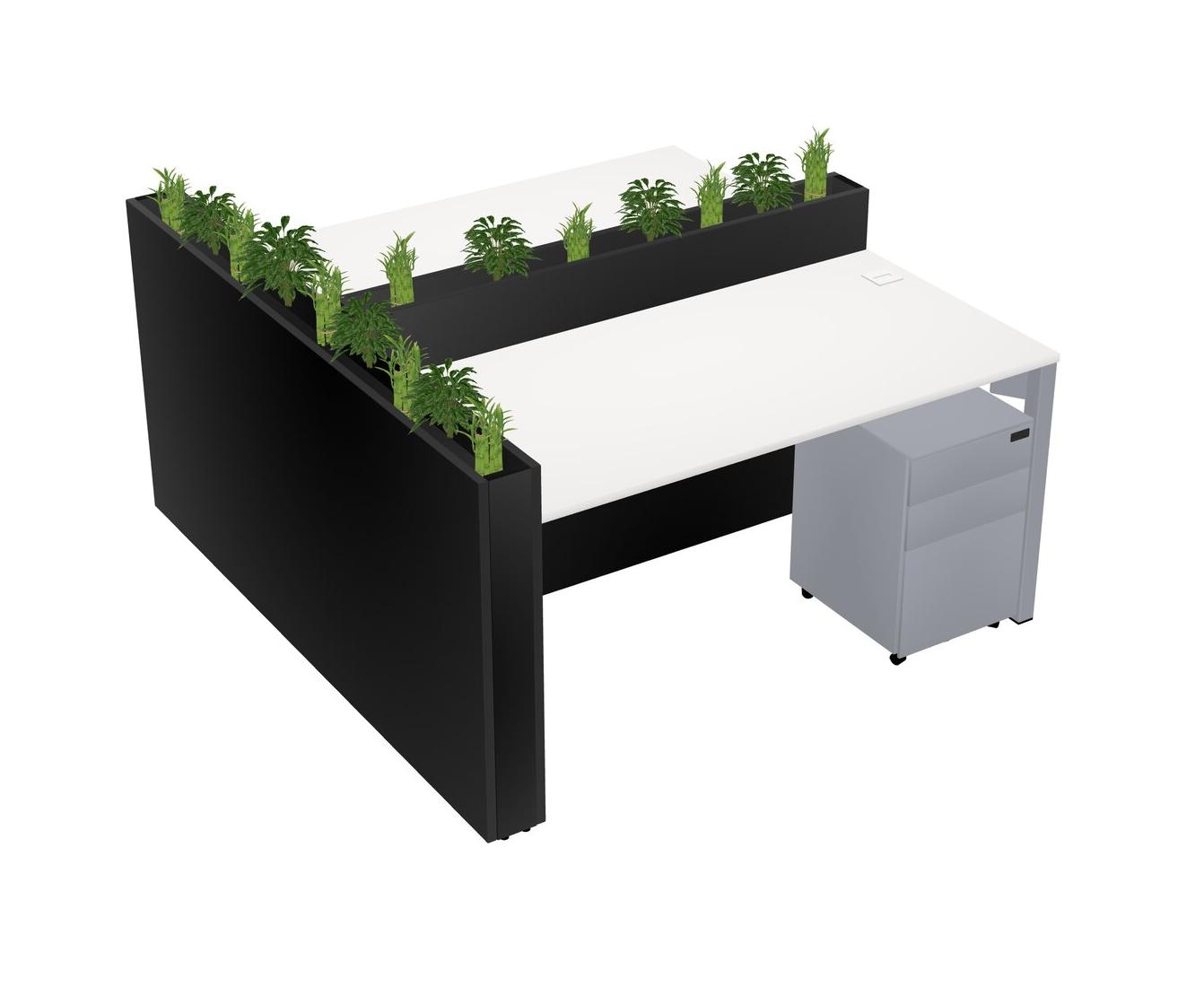 White Rectangular Shared Office Desk System Metal Mobile Drawers (Pots & Plants Sold Separately)