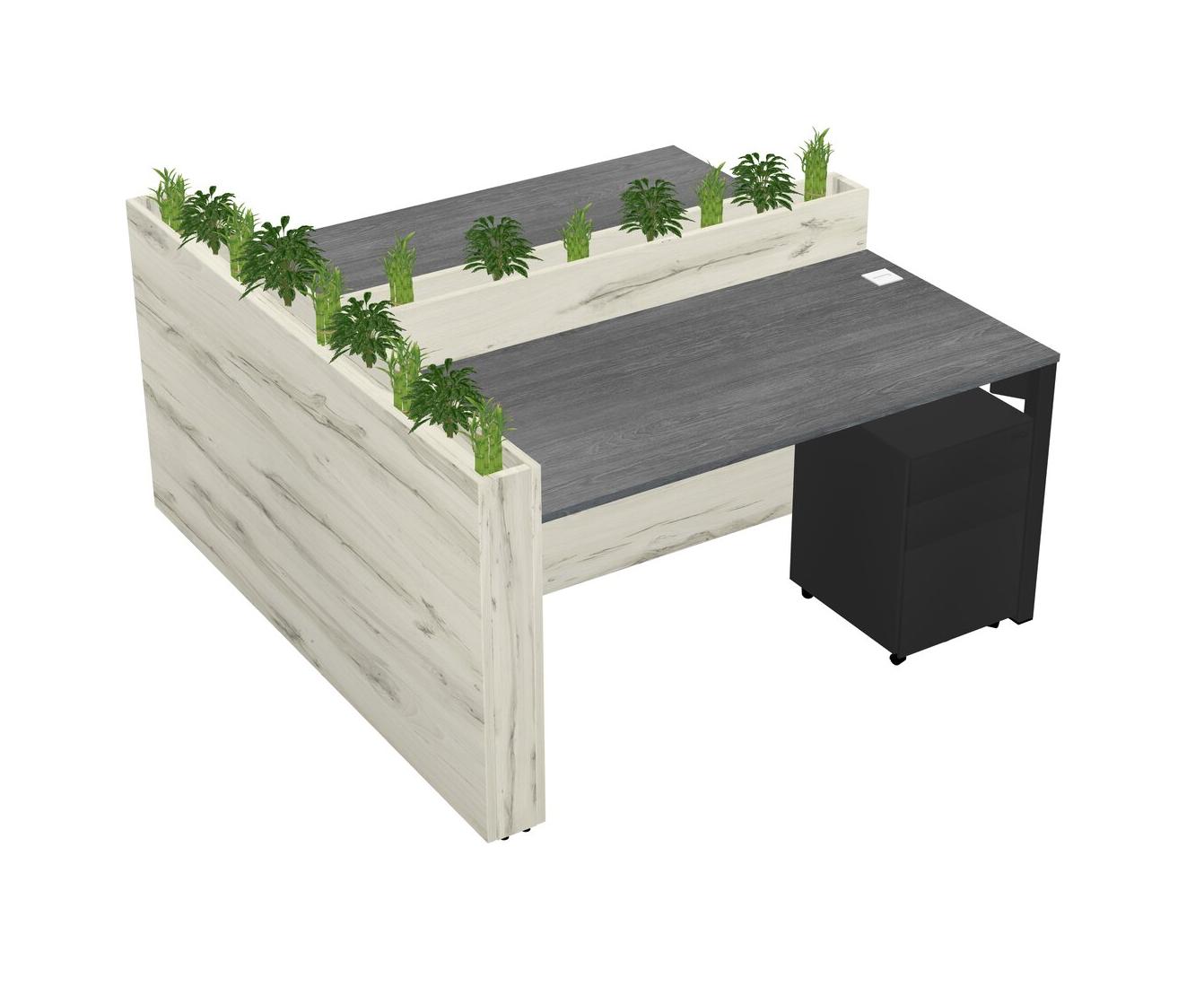 Grey Rectangular Shared Office Desk System Metal Mobile Drawers (Pots & Plants Sold Separately)