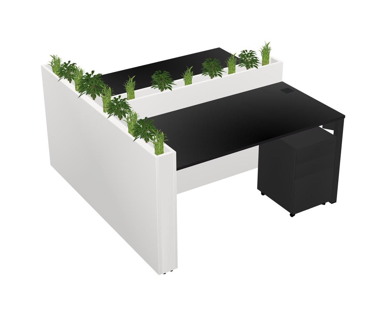 Black Rectangular Shared Office Desk System Metal Mobile Drawers (Pots & Plants Sold Separately)