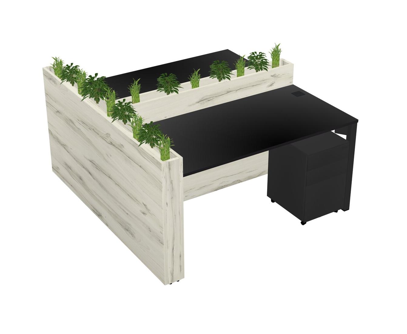 Black Rectangular Shared Office Desk System Metal Mobile Drawers (Pots & Plants Sold Separately)