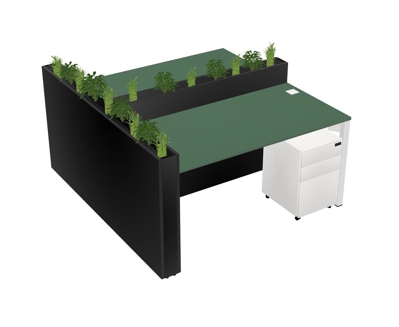 Green Rectangular Shared Office Desk System Metal Mobile Drawers (Pots & Plants Sold Separately)