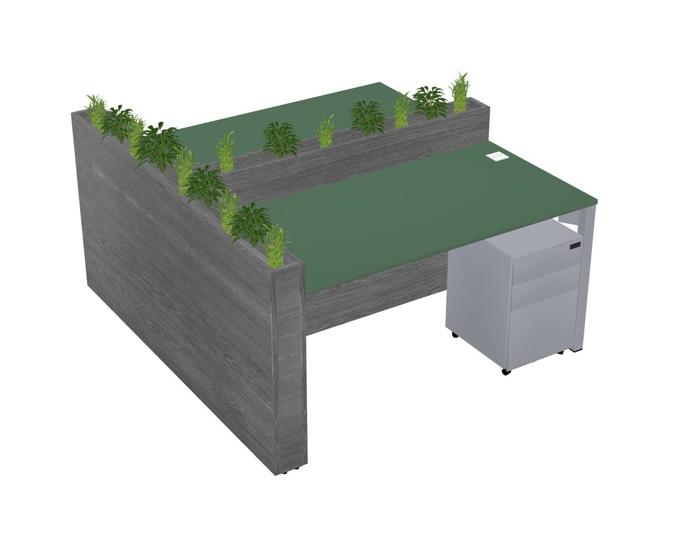 Green Rectangular Shared Office Desk System Metal Mobile Drawers (Pots & Plants Sold Separately)