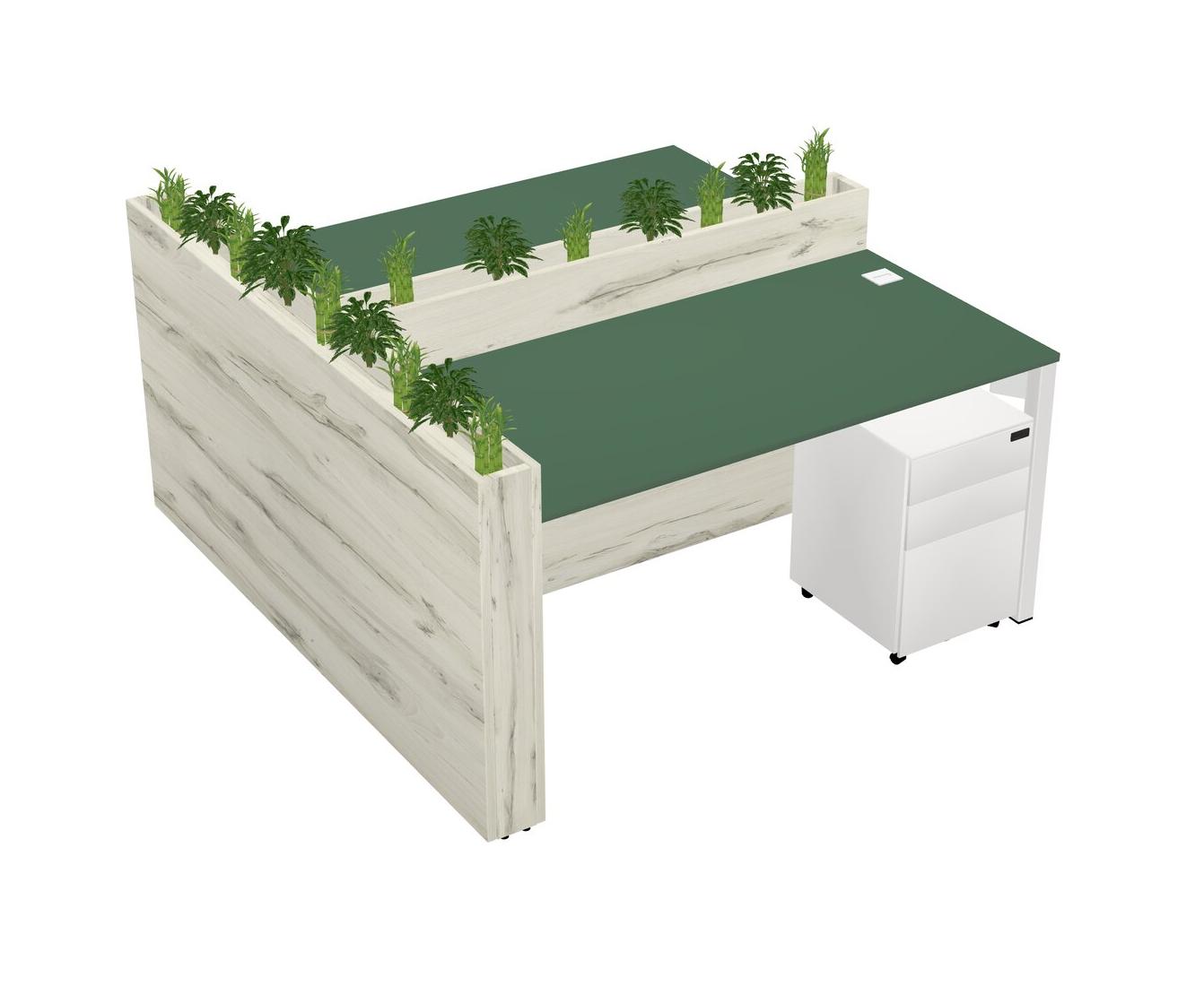 Green Rectangular Shared Office Desk System Metal Mobile Drawers (Pots & Plants Sold Separately)