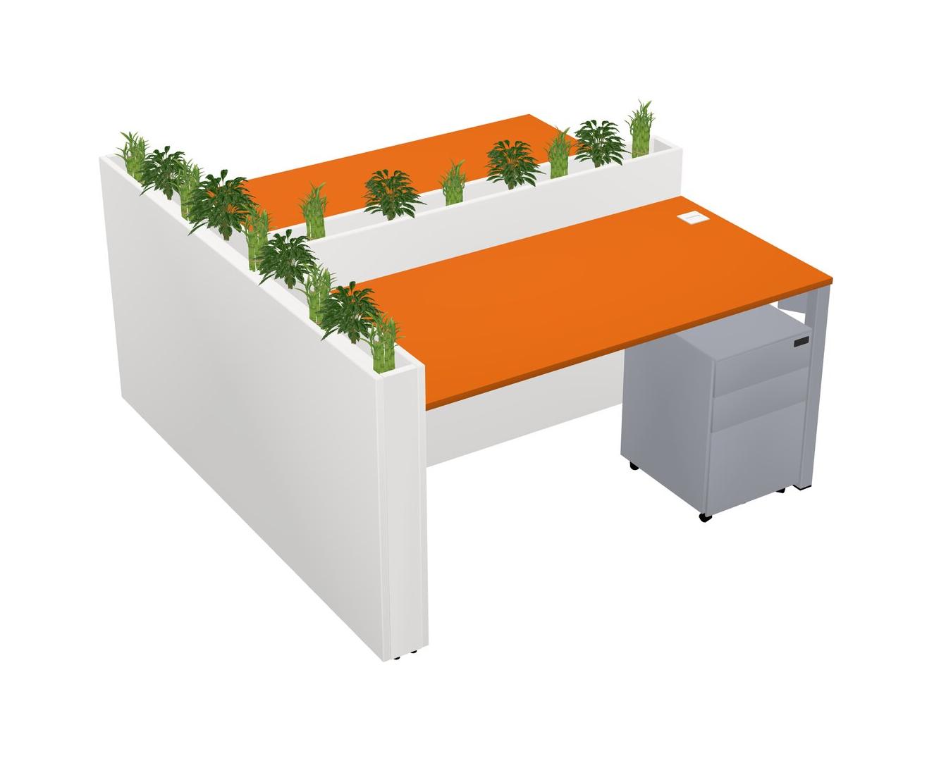 Orange Rectangular Shared Office Desk System Metal Mobile Drawers (Pots & Plants Sold Separately)