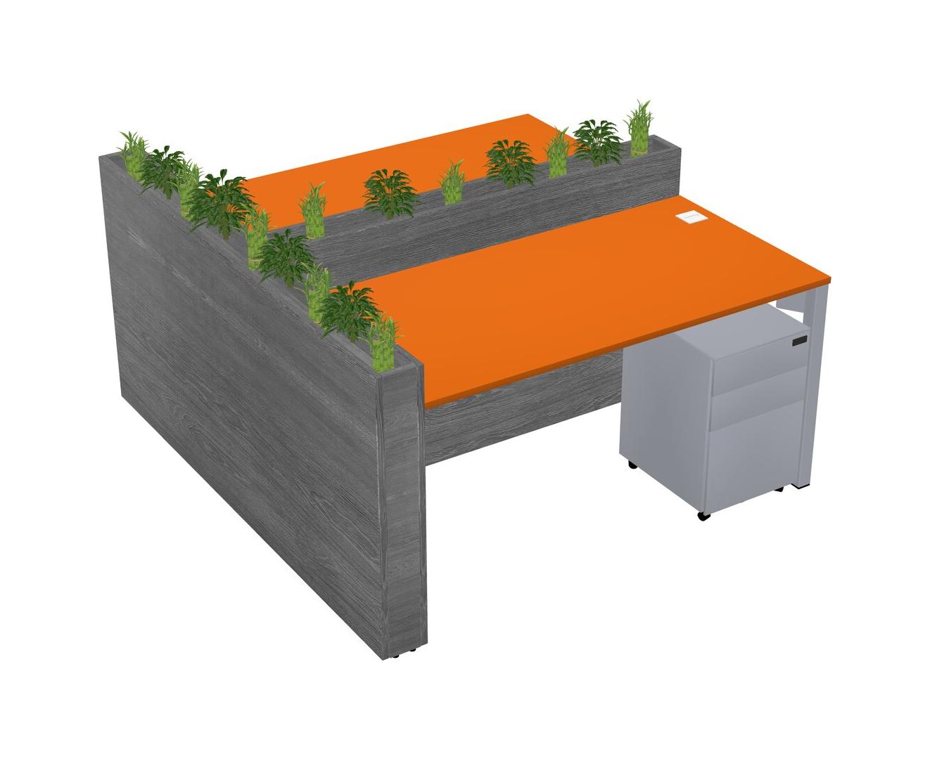Orange Rectangular Shared Office Desk System Metal Mobile Drawers (Pots & Plants Sold Separately)