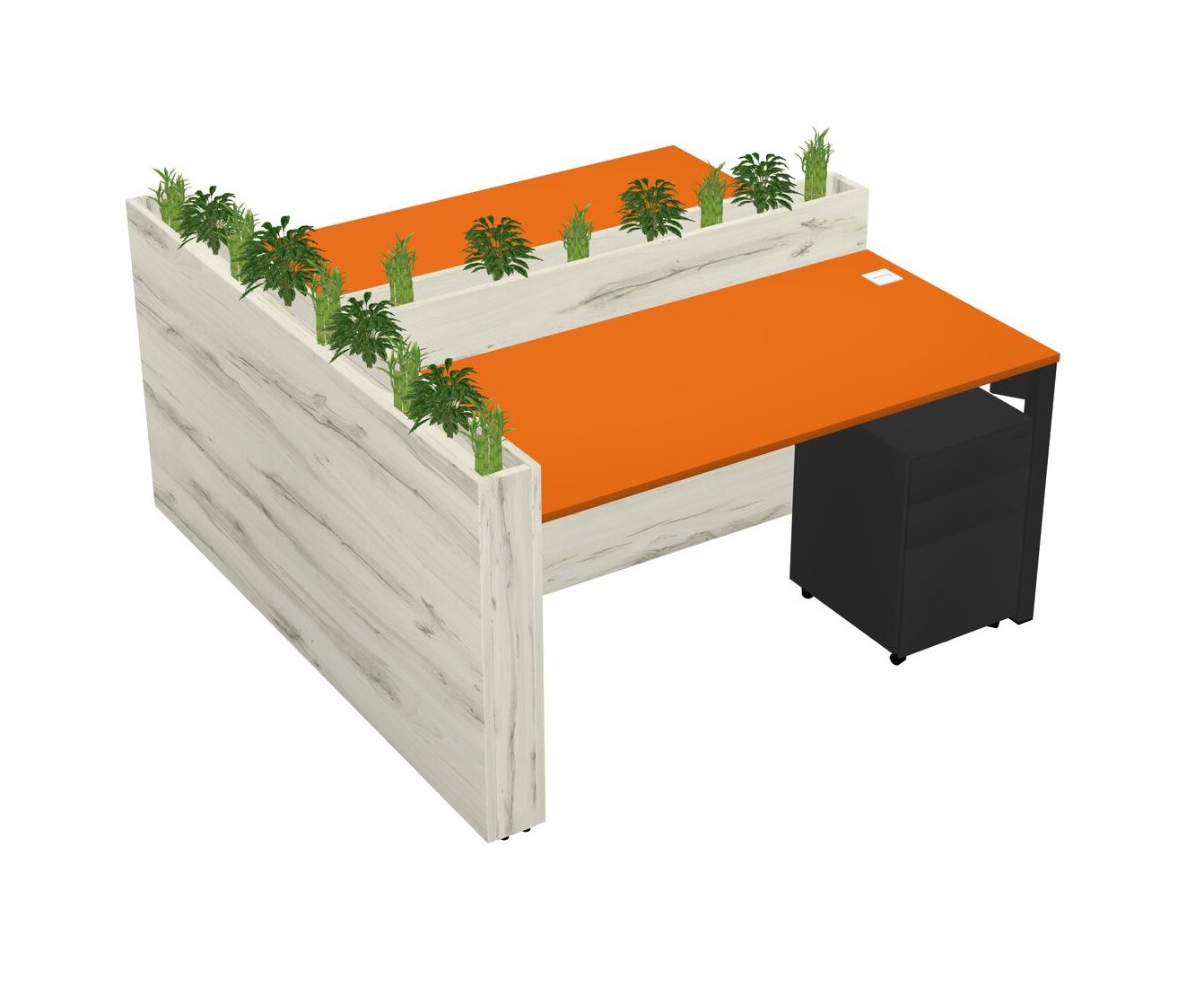 Orange Rectangular Shared Office Desk System Metal Mobile Drawers (Pots & Plants Sold Separately)