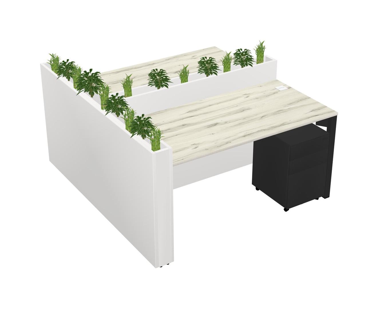 Heinne Holz Rectangular Shared Office Desk System Metal Mobile Drawers (Pots & Plants Sold Separately)